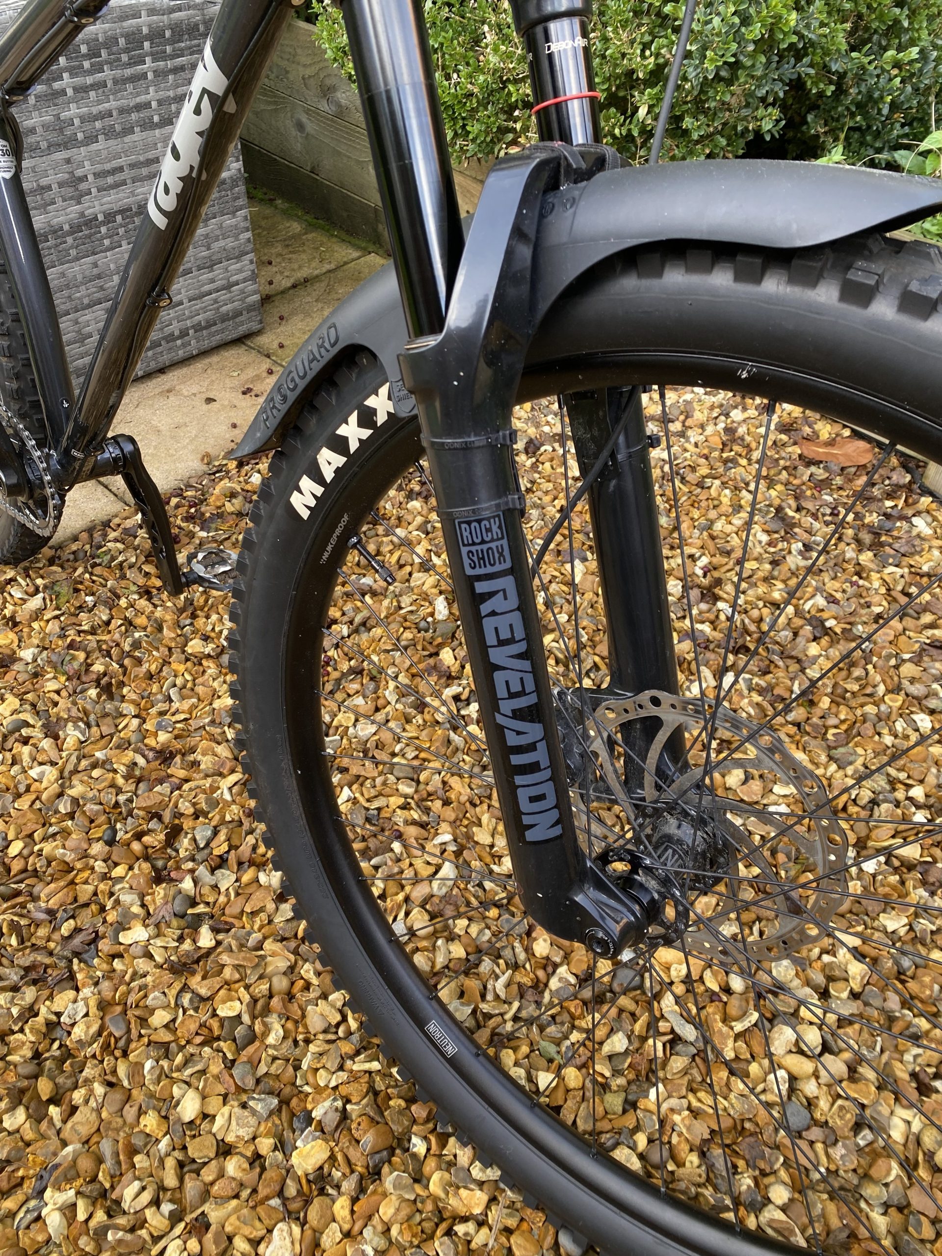 Forks: Rock shox Revelations 140mm travel (stanchions are unmarked).