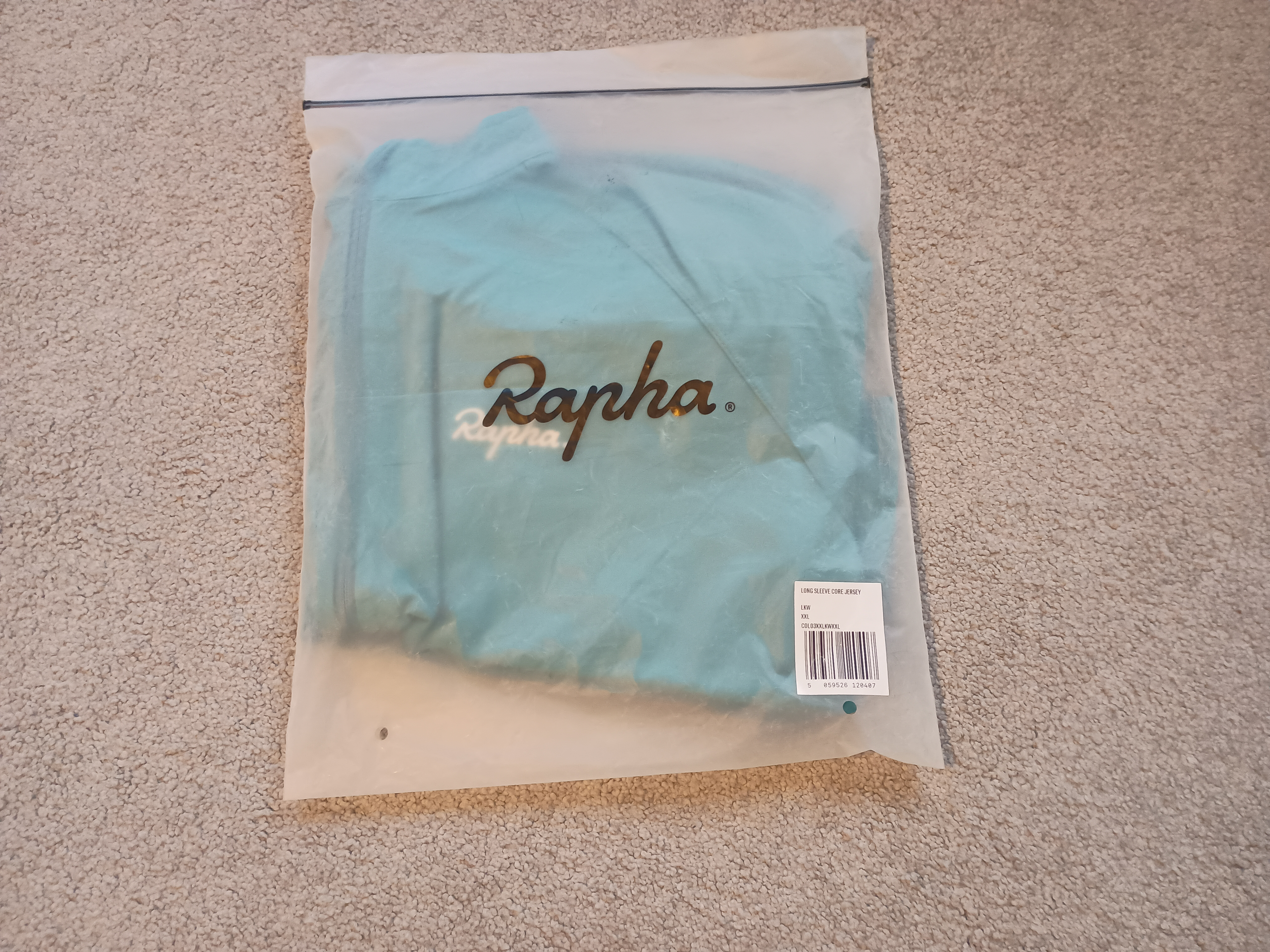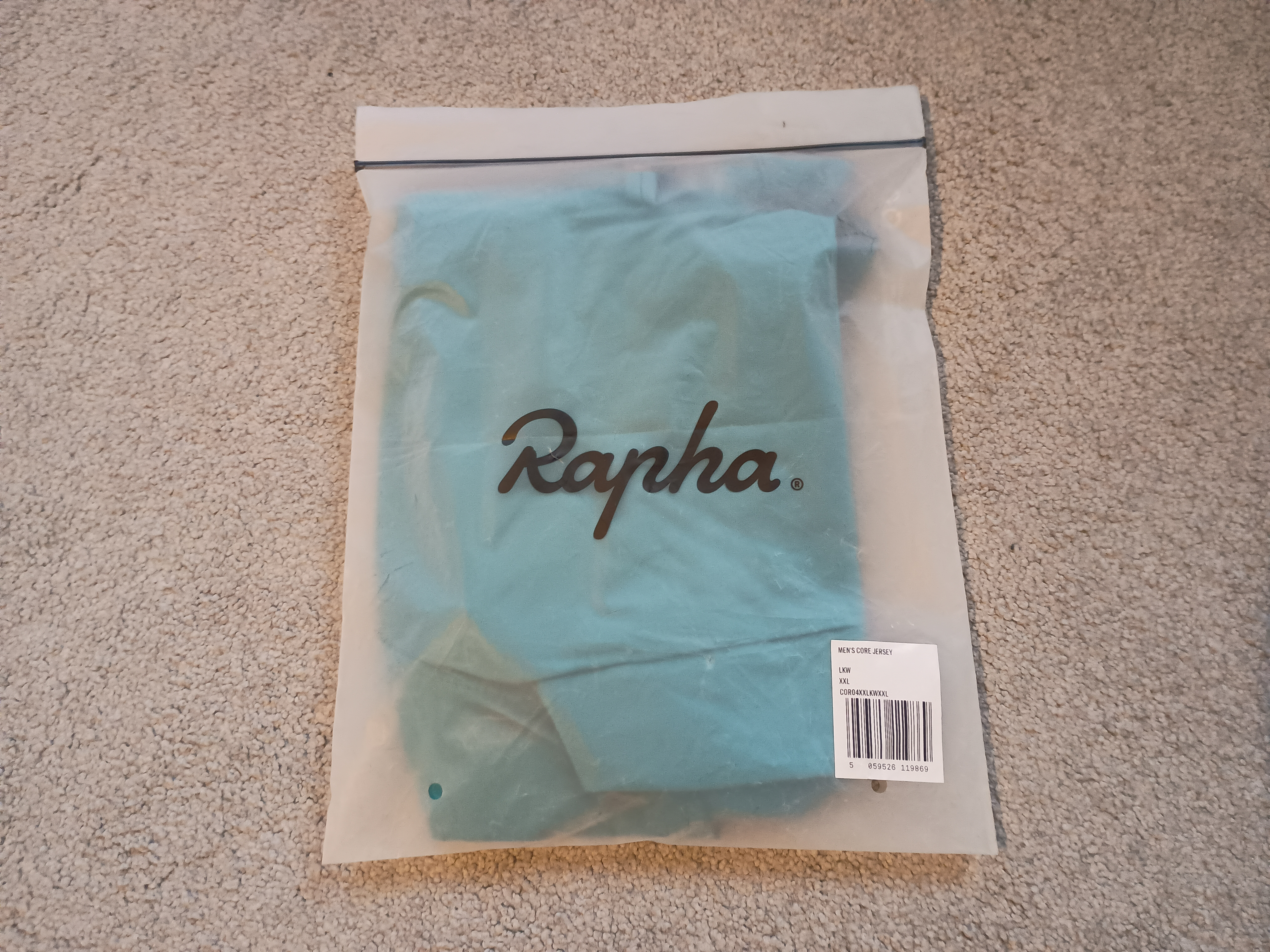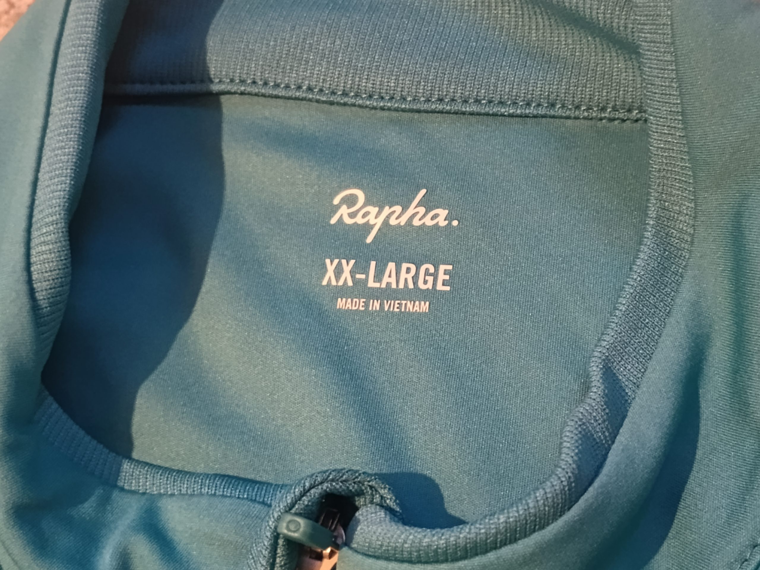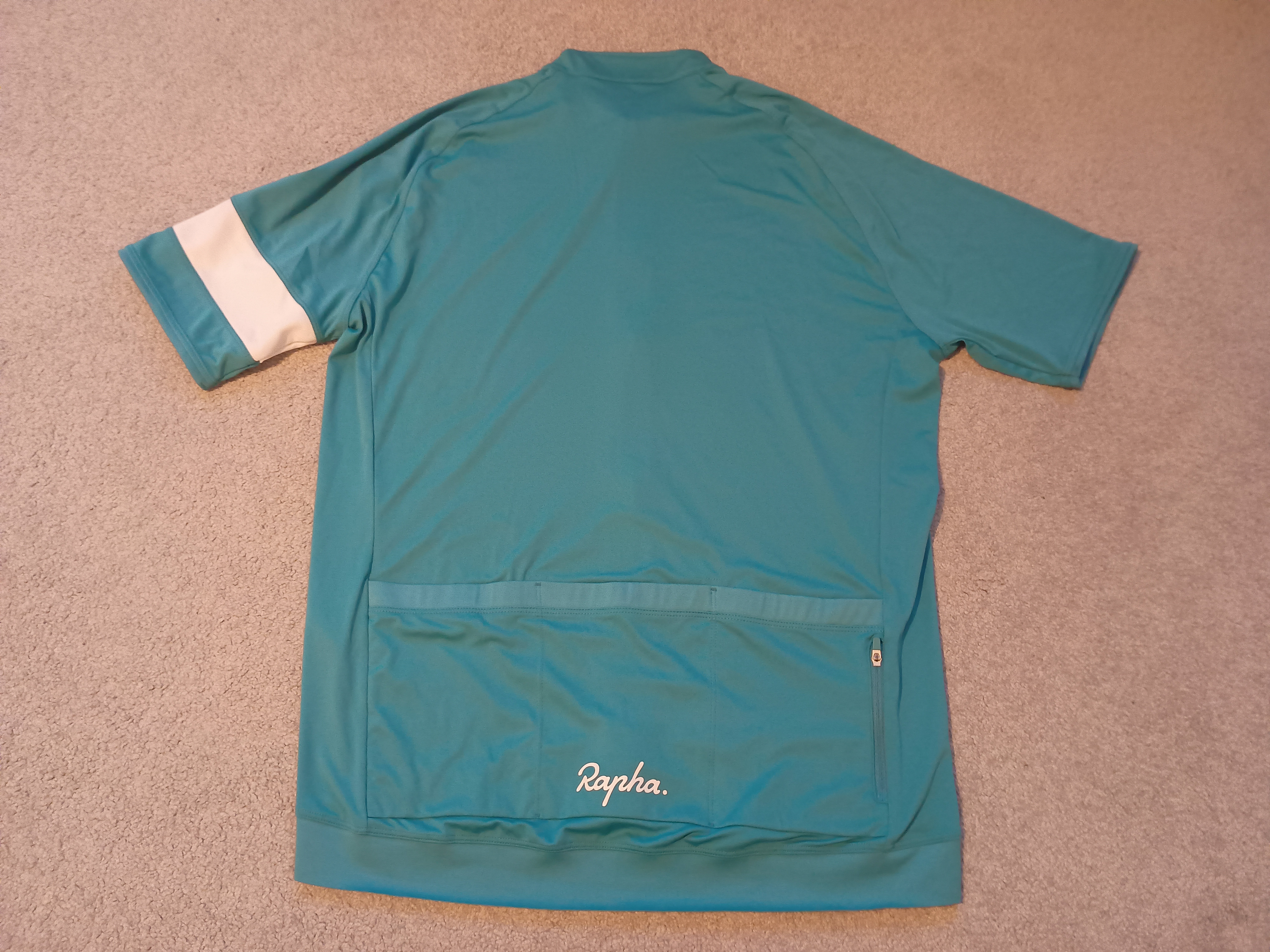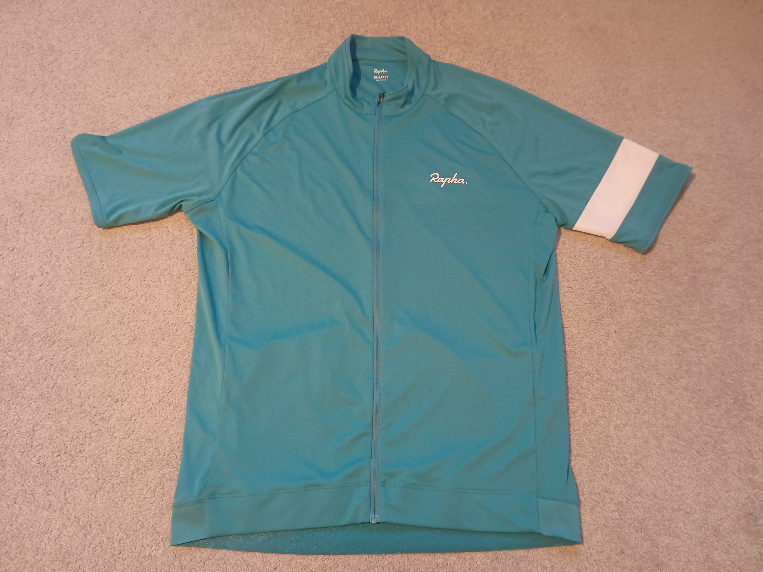 For sale: Rapha Core jerseys, both in Teal/White (apologies, my crappy phone camera makes them look like different colours), both size XXL