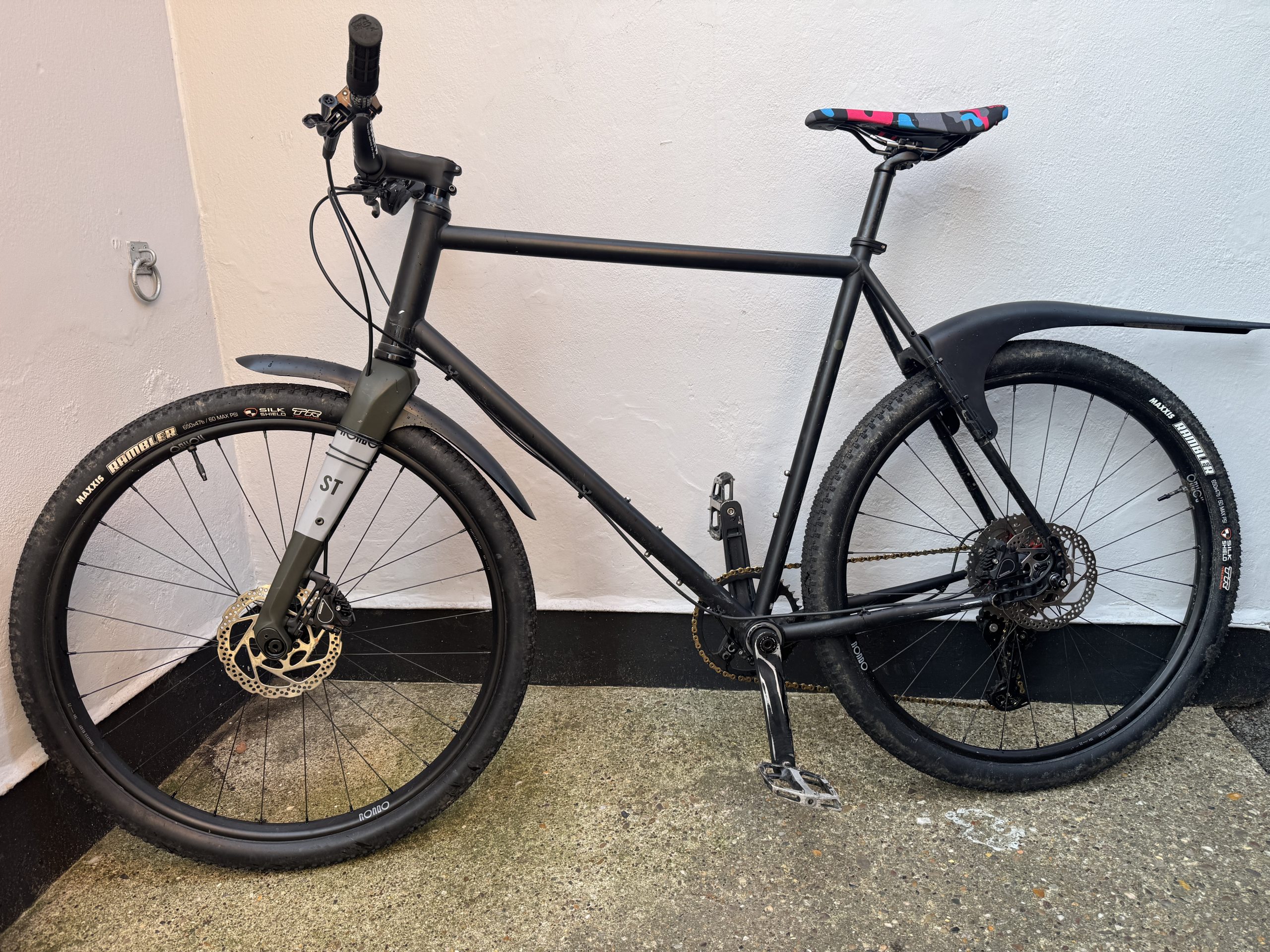 Great fun flat bar gravel/urban racer bike. Has option of running gears, singlespeed, belt drive hub gears etc. Size XL – great fit for anyone over 6’1″