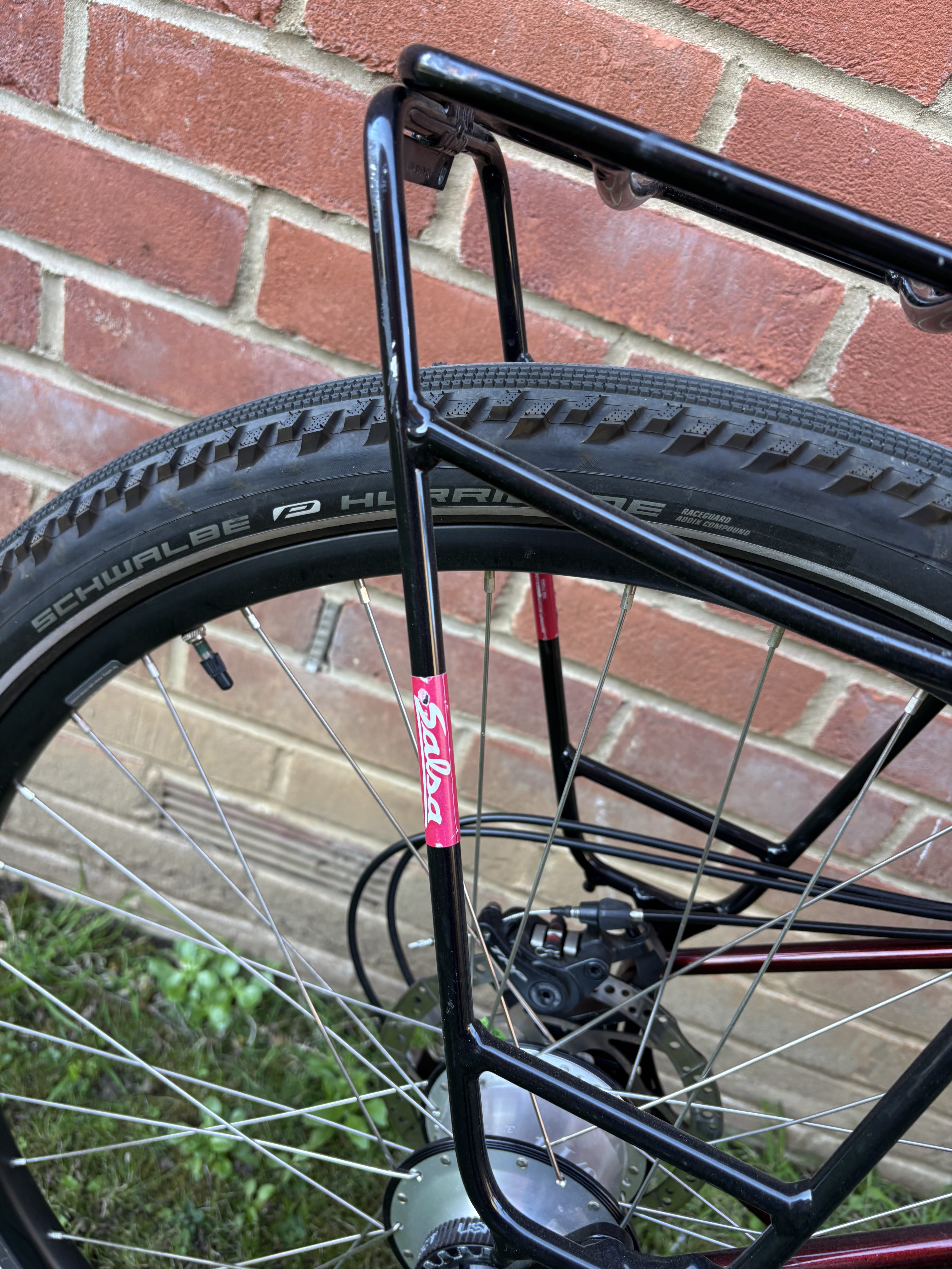 Tyres/other: Schwalbe Hurricanes – mixed-surface setup; ready for racks/bags and big miles