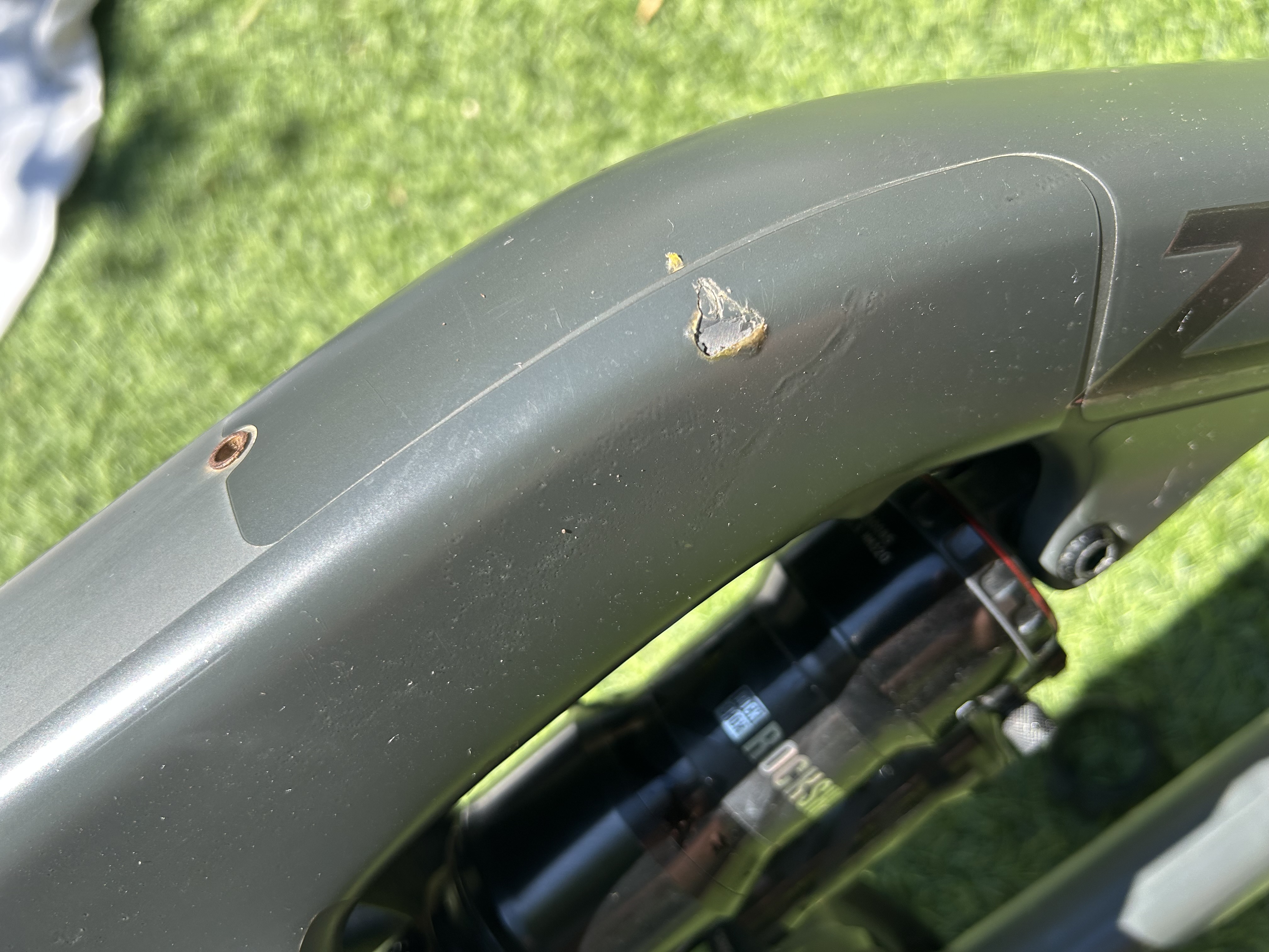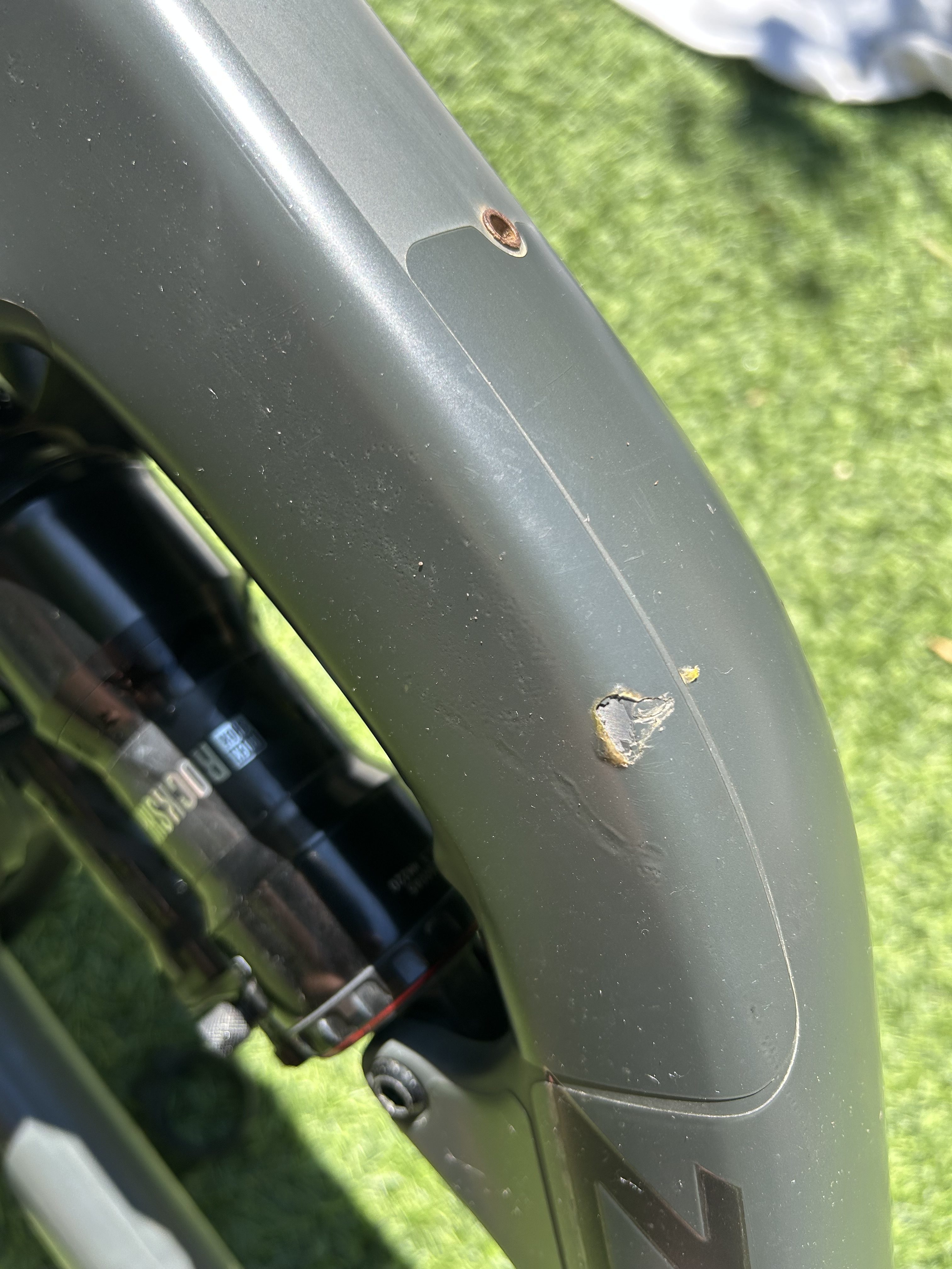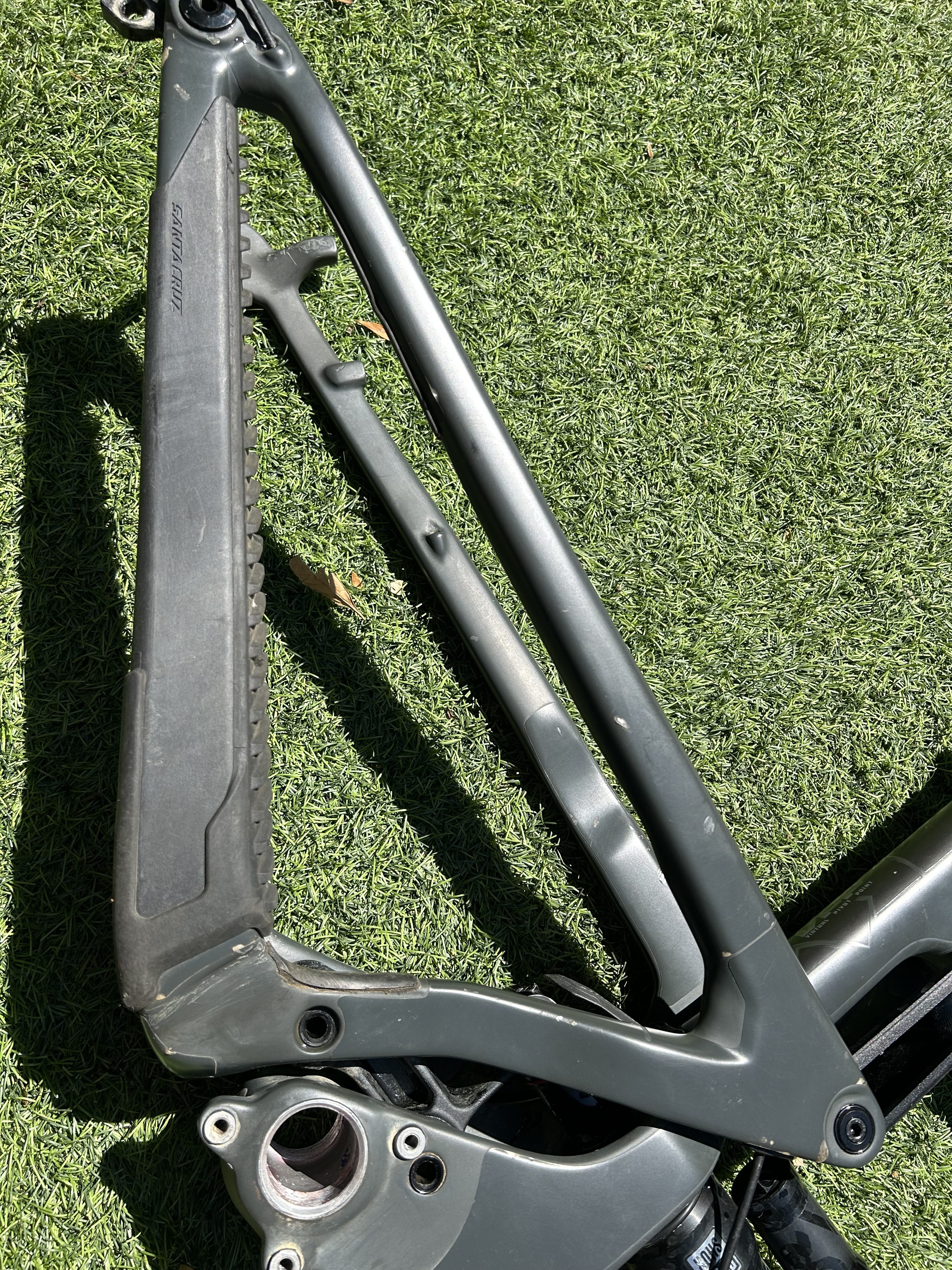 I’ve had this frame for just over a year, I have an e-bike so it’s just been used as an uplift bike for 2 week long holidays. Frame is invisiframed, there are quite a few marks in the invisiframe as expected with the age, there is only one I can find which has chipped the paint which sits under the rock guard (see pic). I have a brand new Invisiframe kit which I will include in the sale.