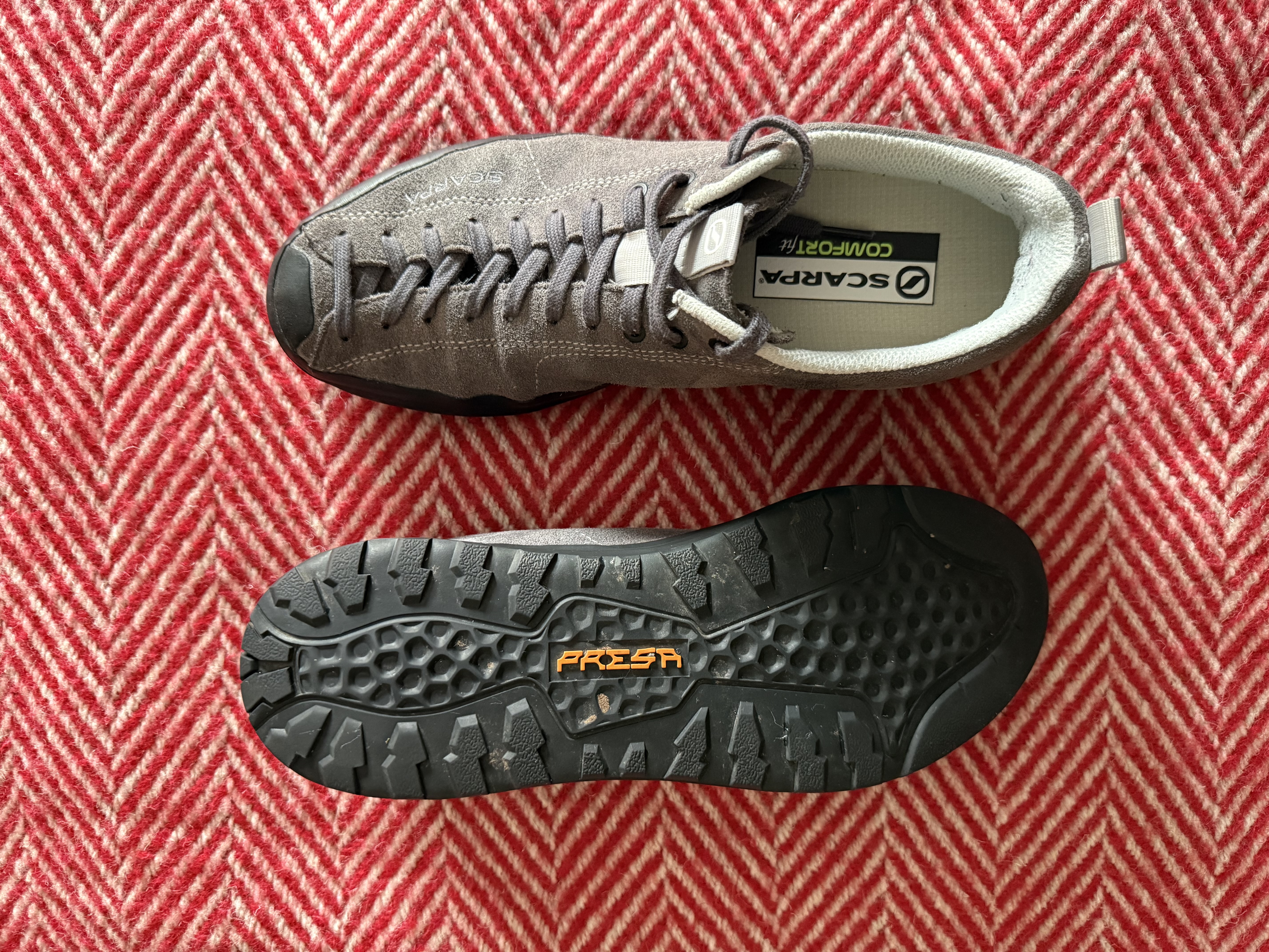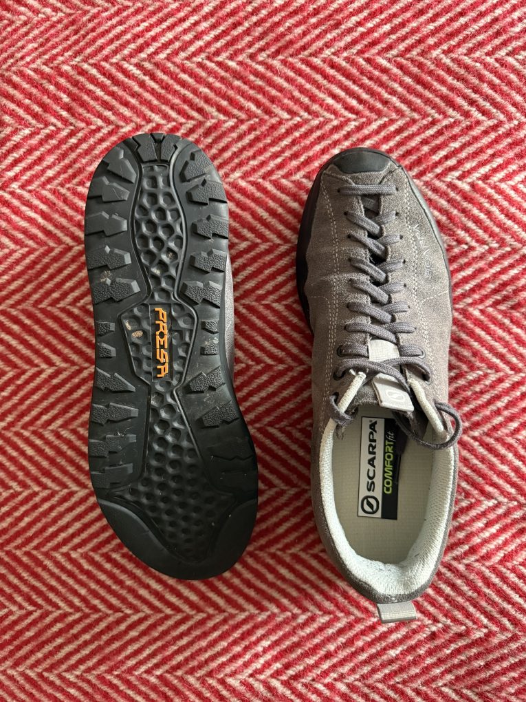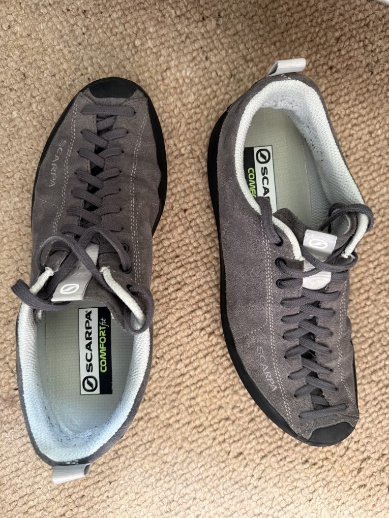 Scarpa Mojito Wrap shoes, size 44, colour anthracite. Spare insoles. Excellent condition. £25 includes postage.