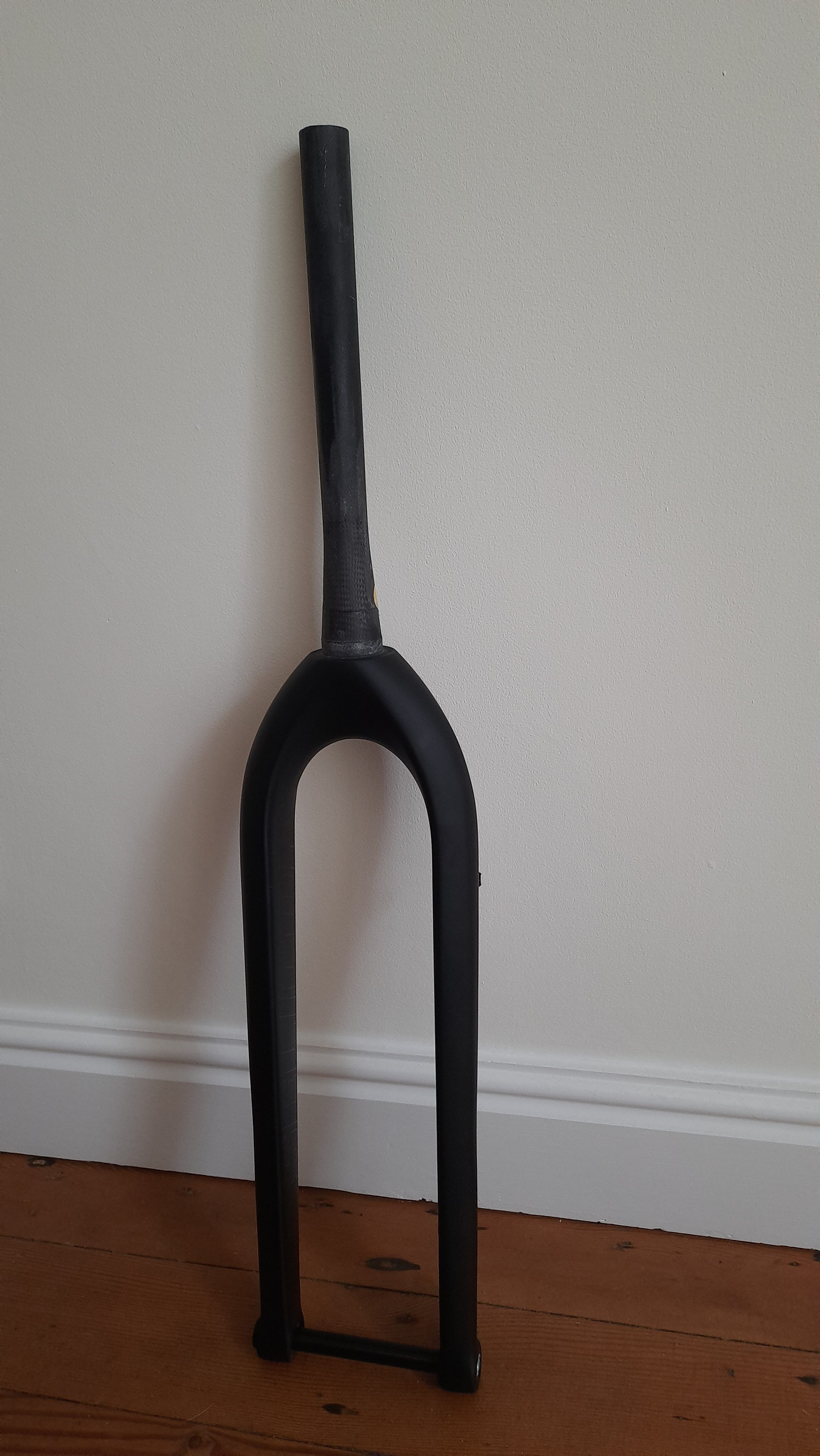 A full carbon monocoque rigid fork with tapered steerer for 27.5″ and 29er wheel sizes. Capable of being fitted to mountain bikes and designed to replace a suspension fork with a travel between 100-120mm.