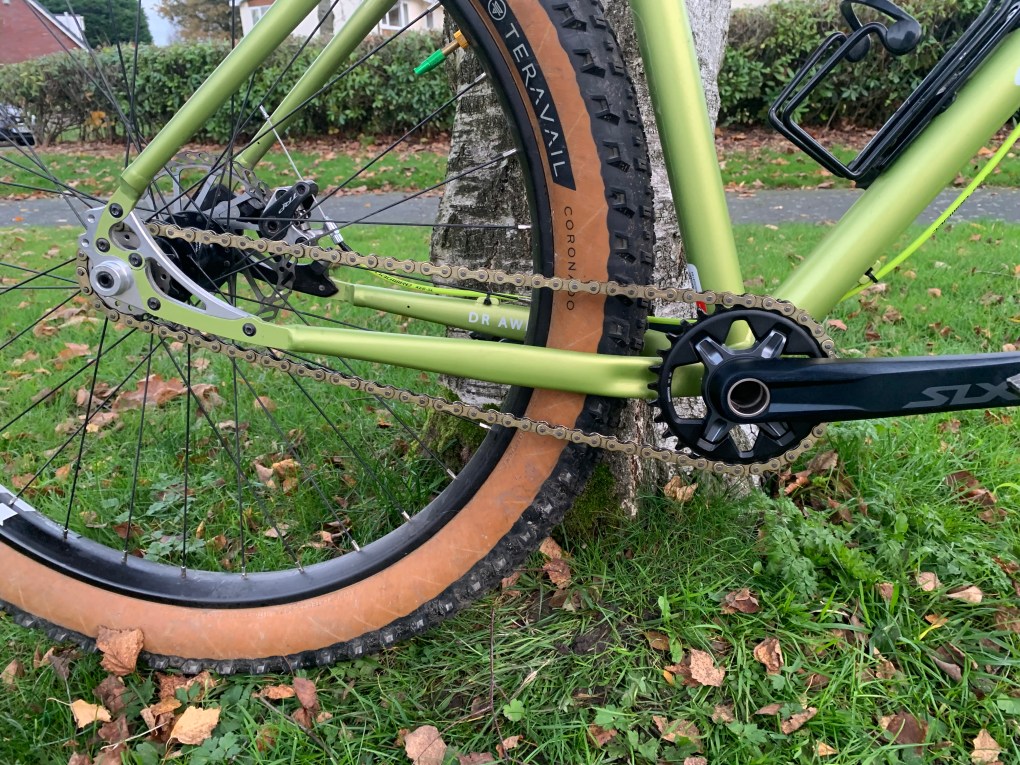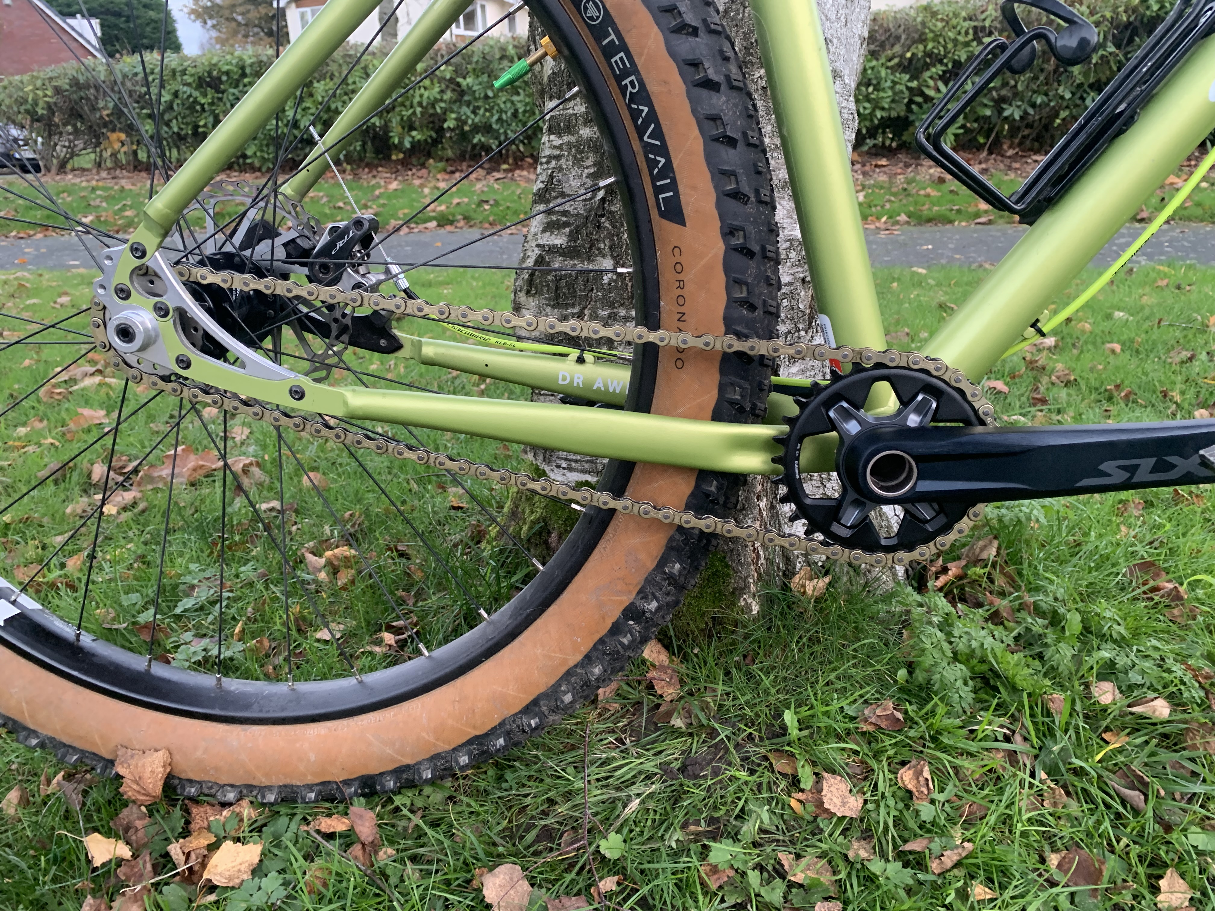 The frame runs on a very high quality eccentric bottom bracket by Rideworks (who now own Shand) and with a simple change of the rear Paragon dropouts it could be set up to run a Rohloff hub or just swapping out the driveside dropout to swap to derailleur gears (the dropouts are available direct from Paragon & I have the product code if you need it).