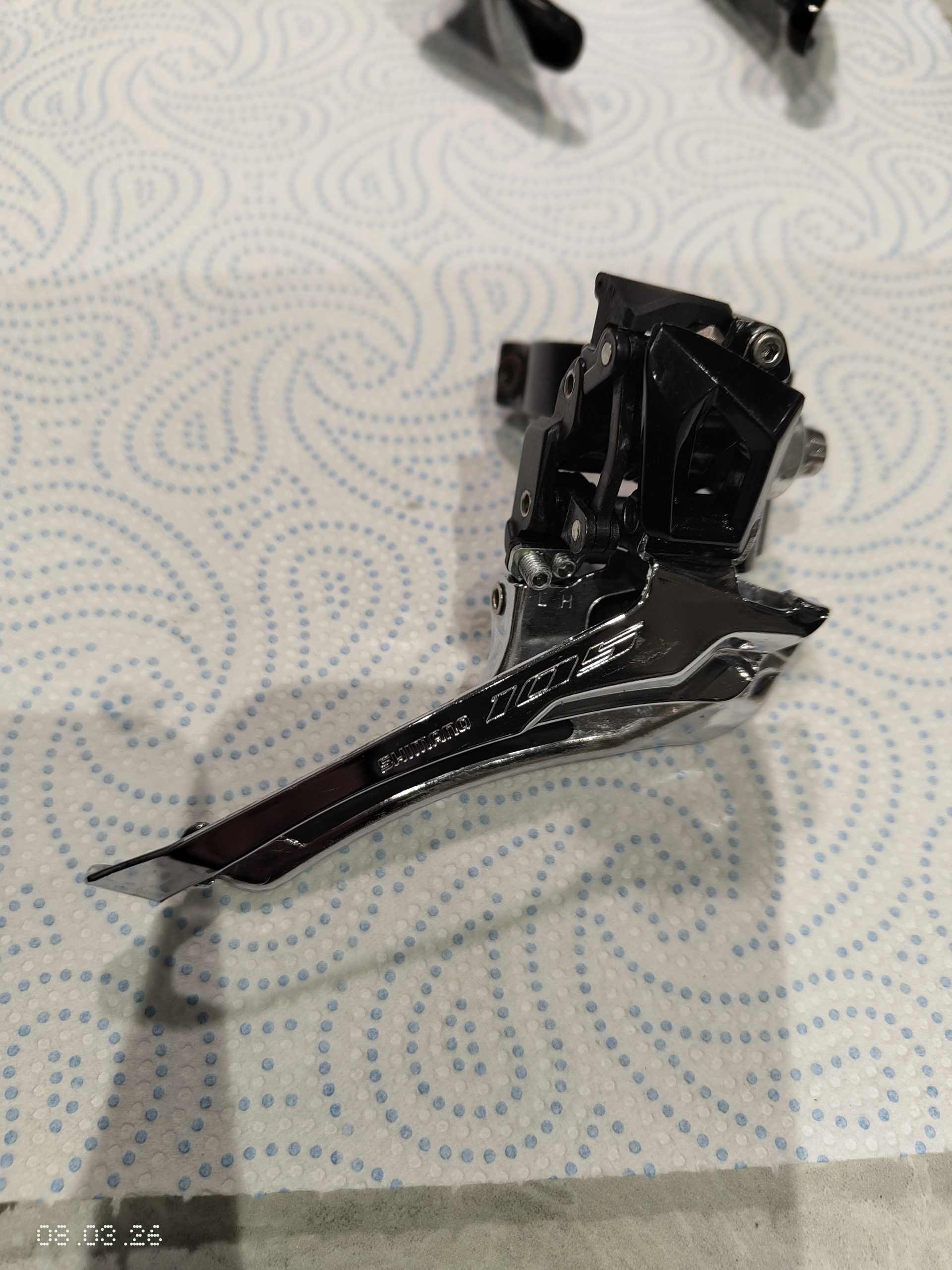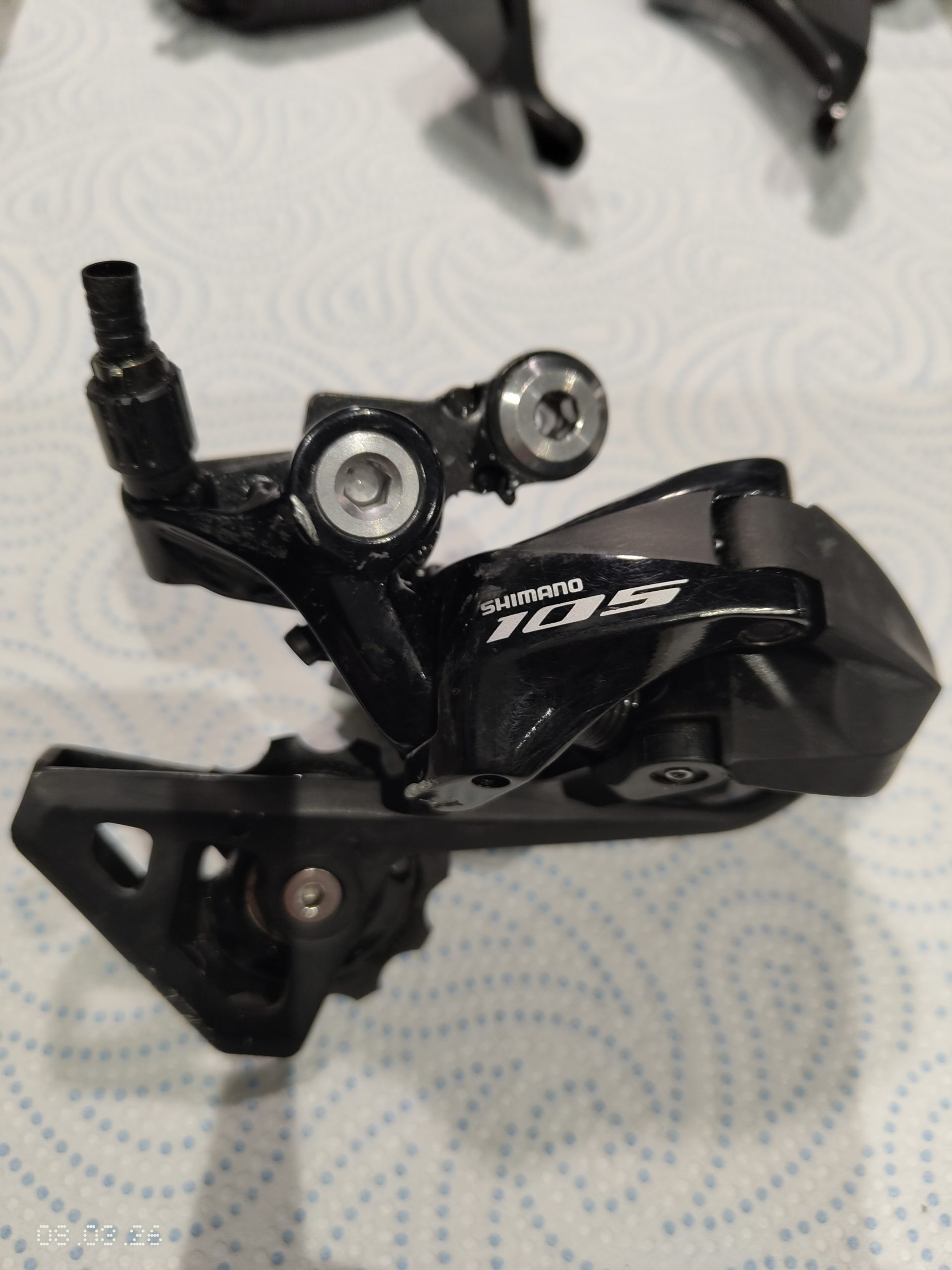 Shimano 105 R7000 mini groupset for rim brakes. 11 speed. Front derailleur is braze on but comes with 31.8mm band. Rear derailleur is short cage.Â