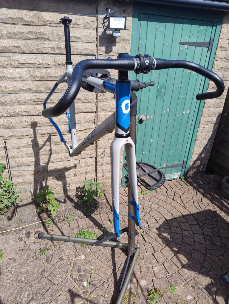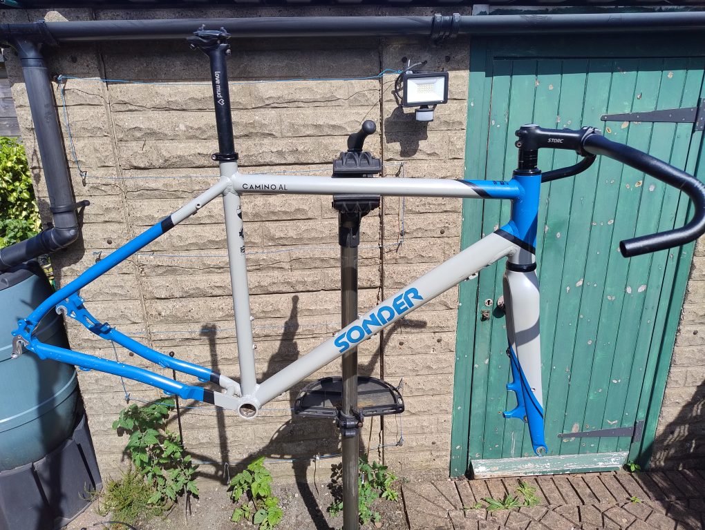 Sonder Camino gravel bike frame, size L, v. 1 (QR drop outs). Alloy frame with carbon fork. Lovemud seatpost, stem and flared handlebar included.