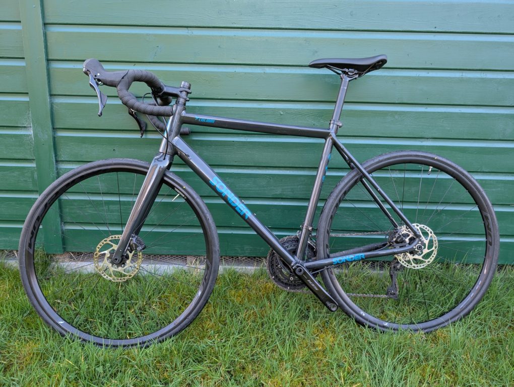 This is designed as an “all-road” bike. It’s got decent tyre clearance, up to 36 according to Sonder. I ran it with mudguards and 32 tyres easily.