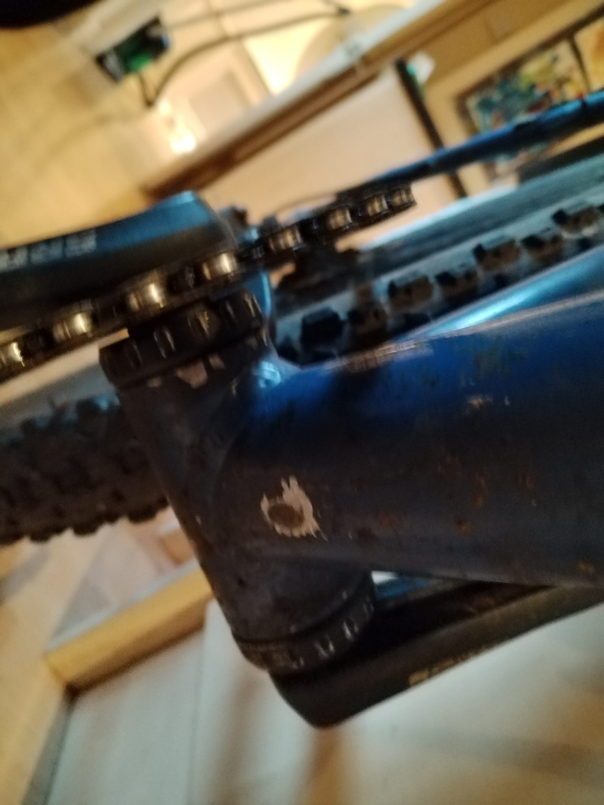 This was used as a commuter so has many, many miles on the clock, frame and fork paint condition can only be described as very poor, I’ve tried pointing out the main gouges (on headtube, from trying too large a chainring and under bb).