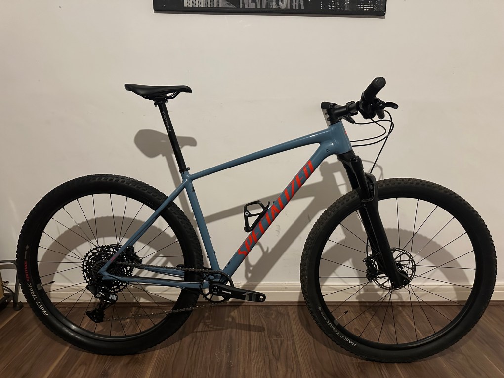 For sale my chisel. 2019 model frame ( has some tiny scratches / cable and tyre rub ) built up with 2021 hardly used original parts from an epic. Specialized lightweight aluminium boost wheelset. Rock Shox Judy Gold 100mm fork. Sram Nx Eagle 1×12 speed drivetrain. Sram db8 4pot hydraulic brakes. All the bearings in the wheels – headset – bb running smooth as a new. Chain cassette also perfect, not streched at all. Absolut ready to ride.