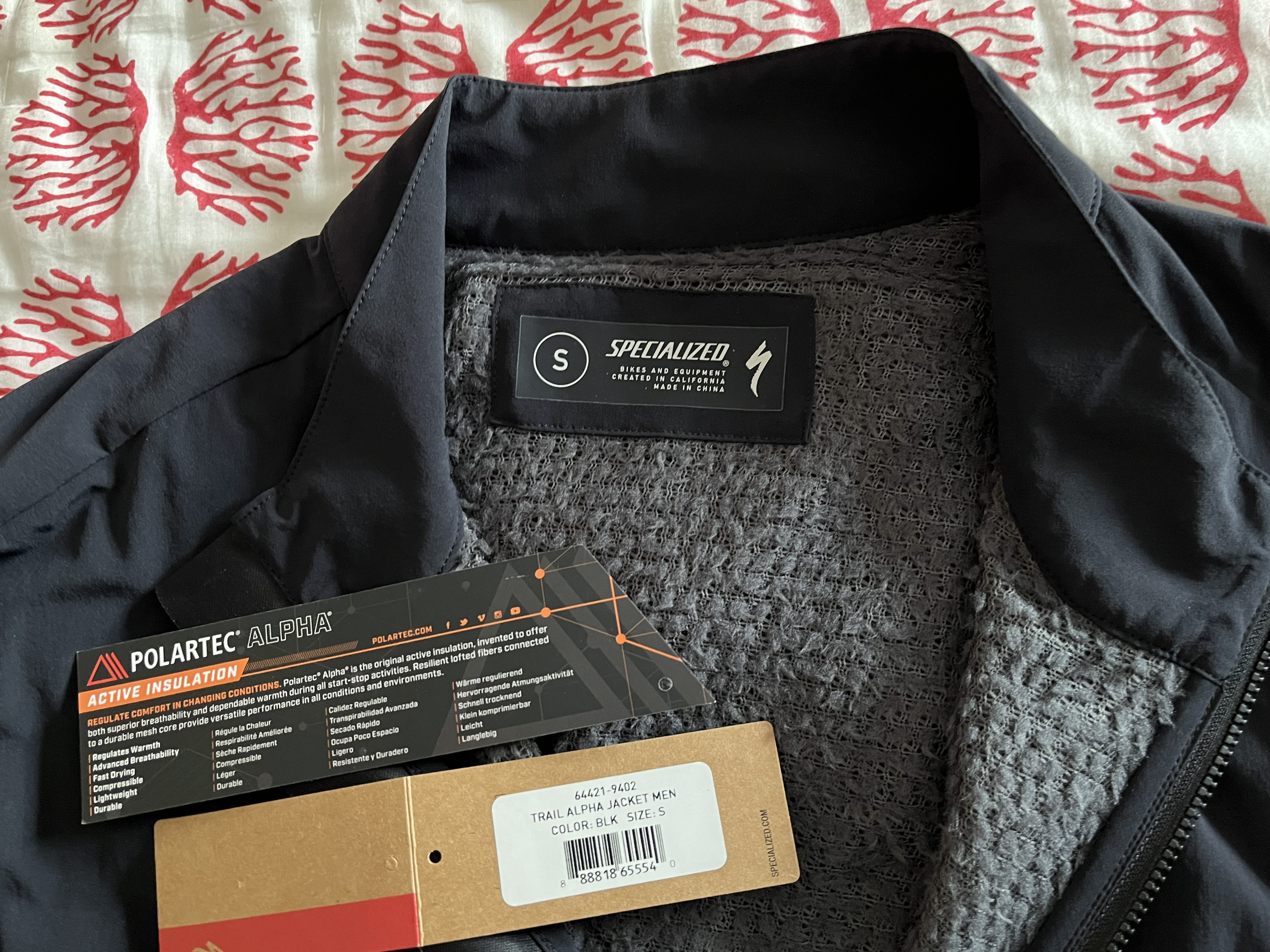 Specialized Trail Alpha jacket. Size is small but pit to pit measurement is 21 inches so fit is more like medium. Mint as new condition.Â
