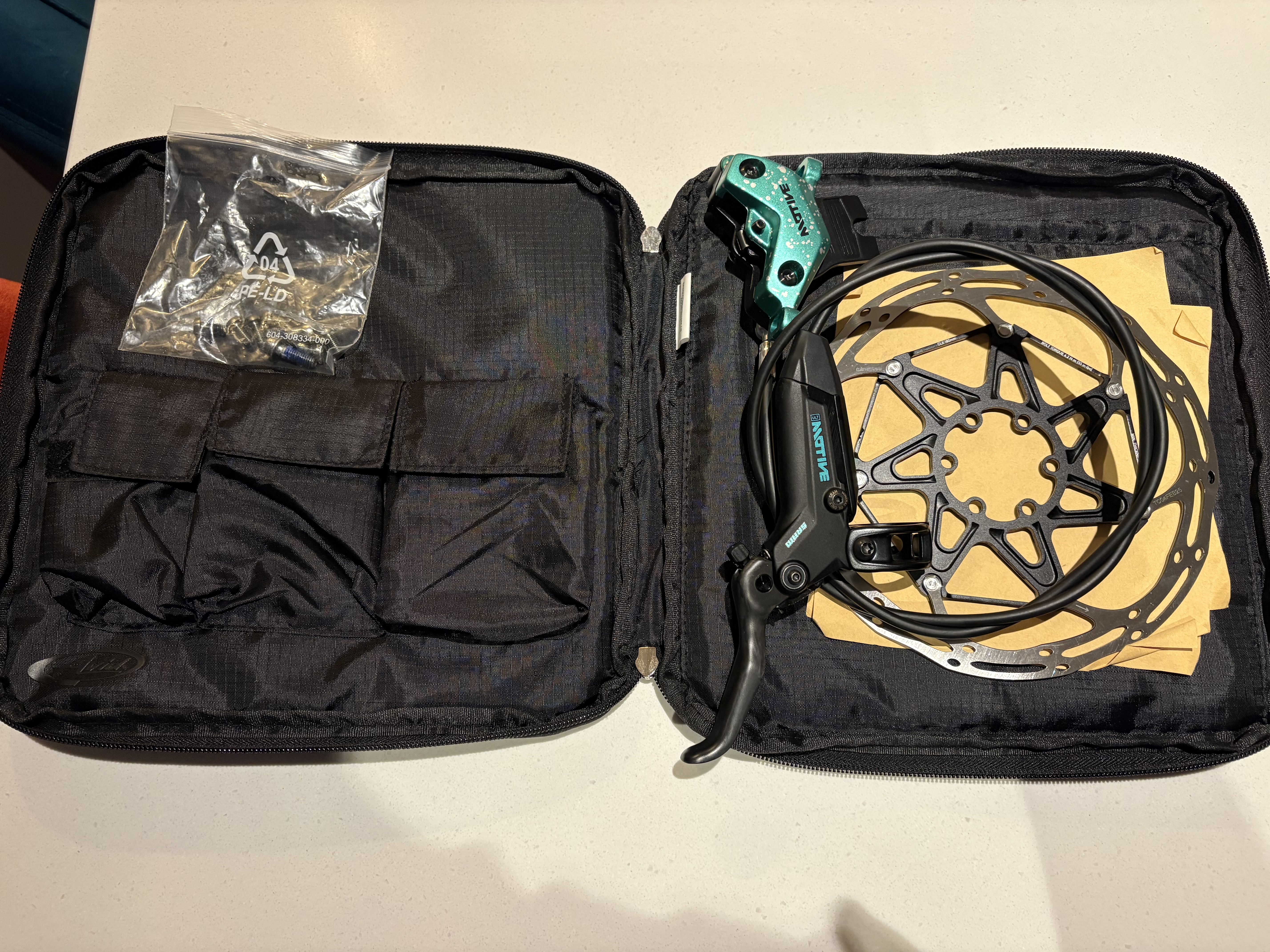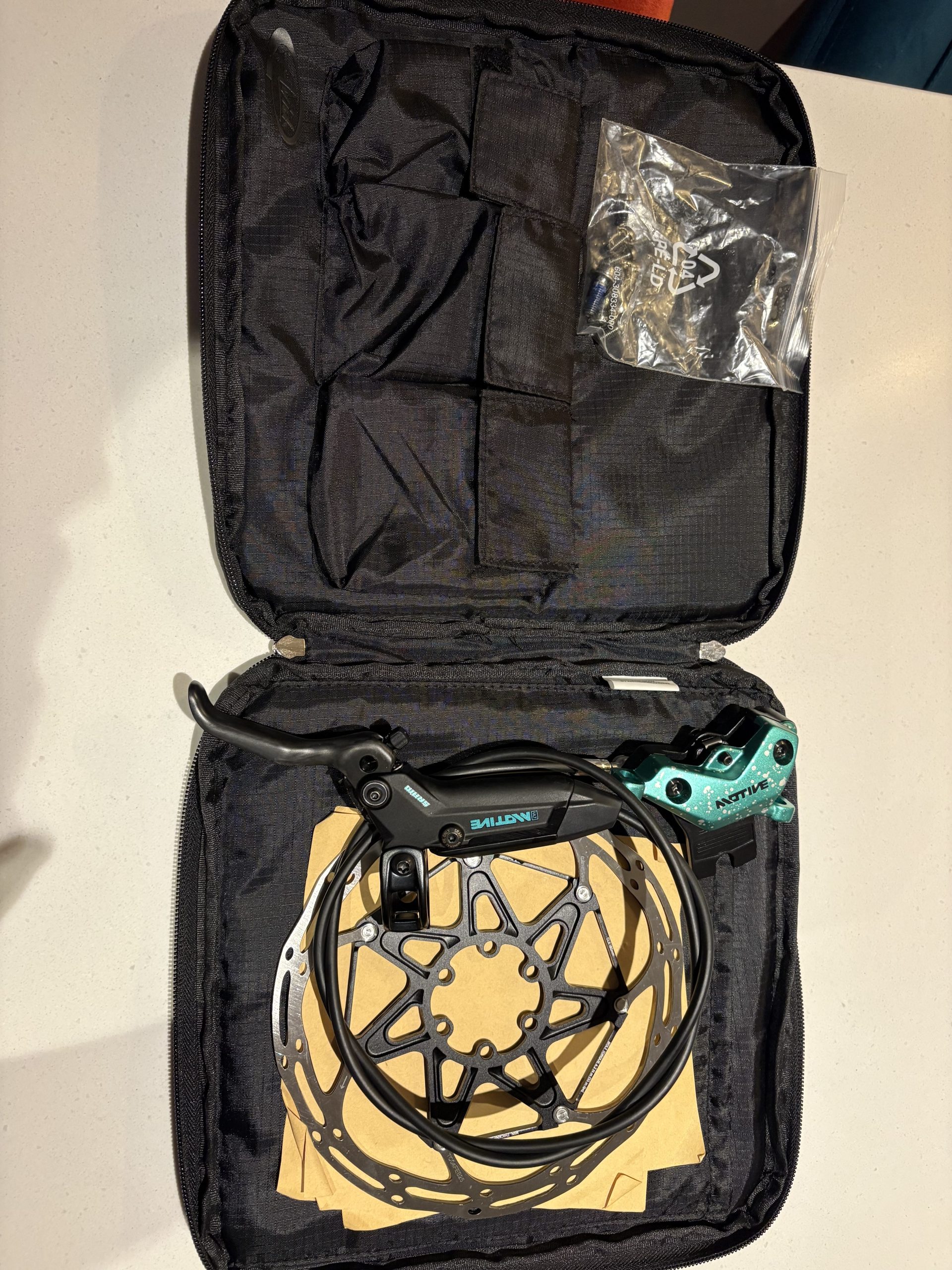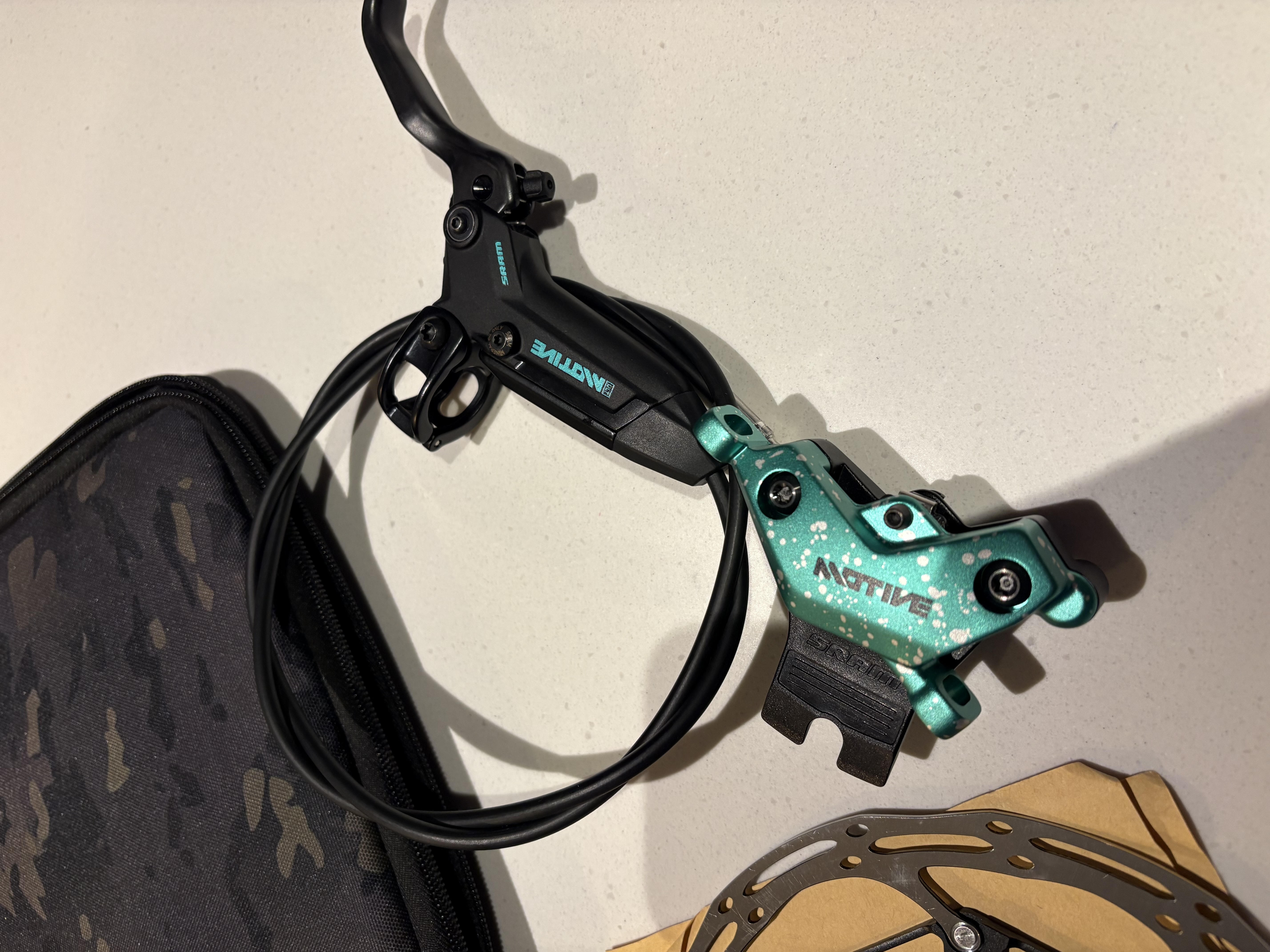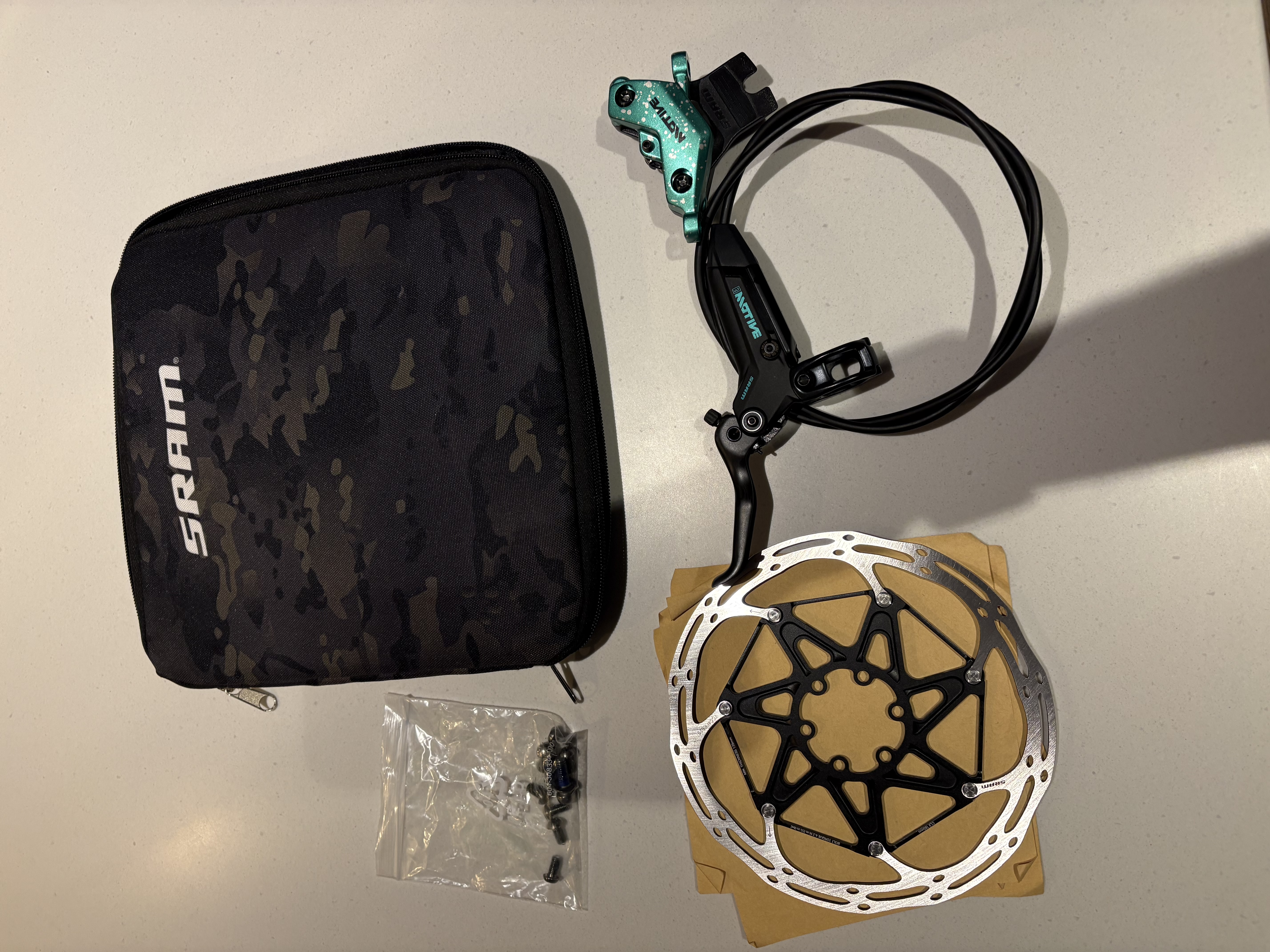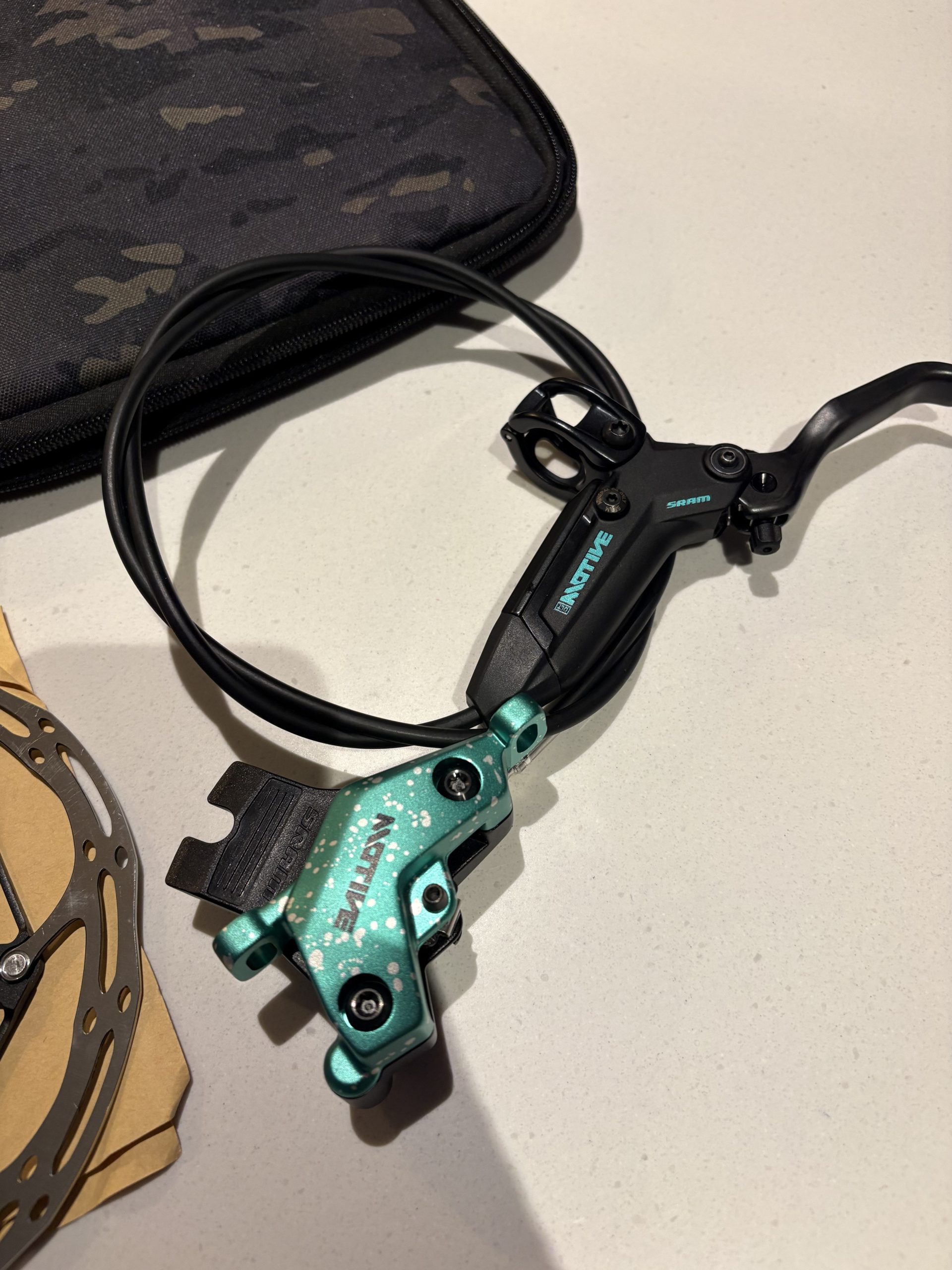 Brand new never fitted 1 front brake Limited Edition Sram Motive Ultimate, limited edition, complete with 180 CLX rotor, bolts,  and sram case, hose is un cut at 900mm, this is very rare, and when released was £600 a pair, but go for more than that on eBay, I’m wanting £175.00 inc postage uk