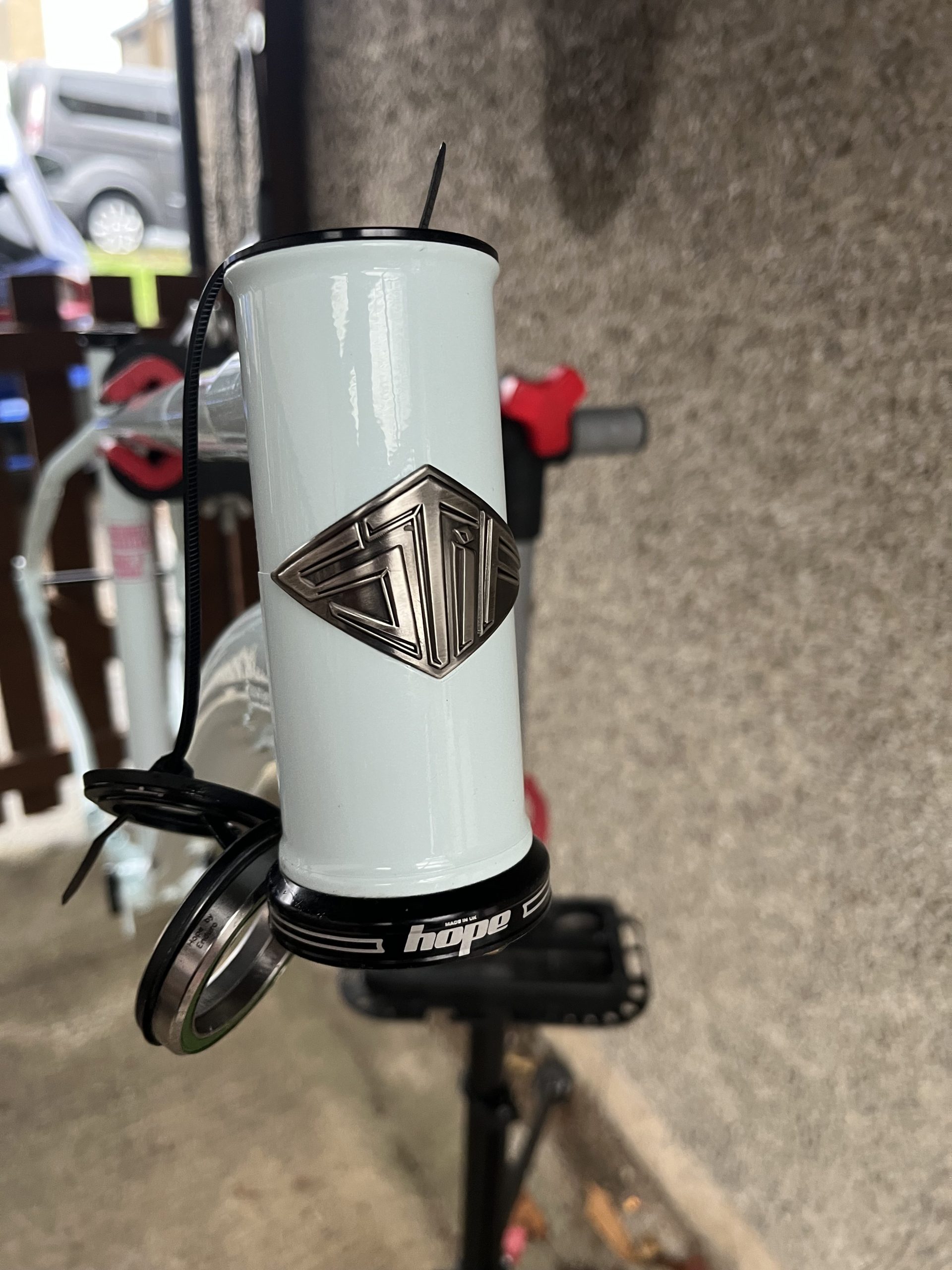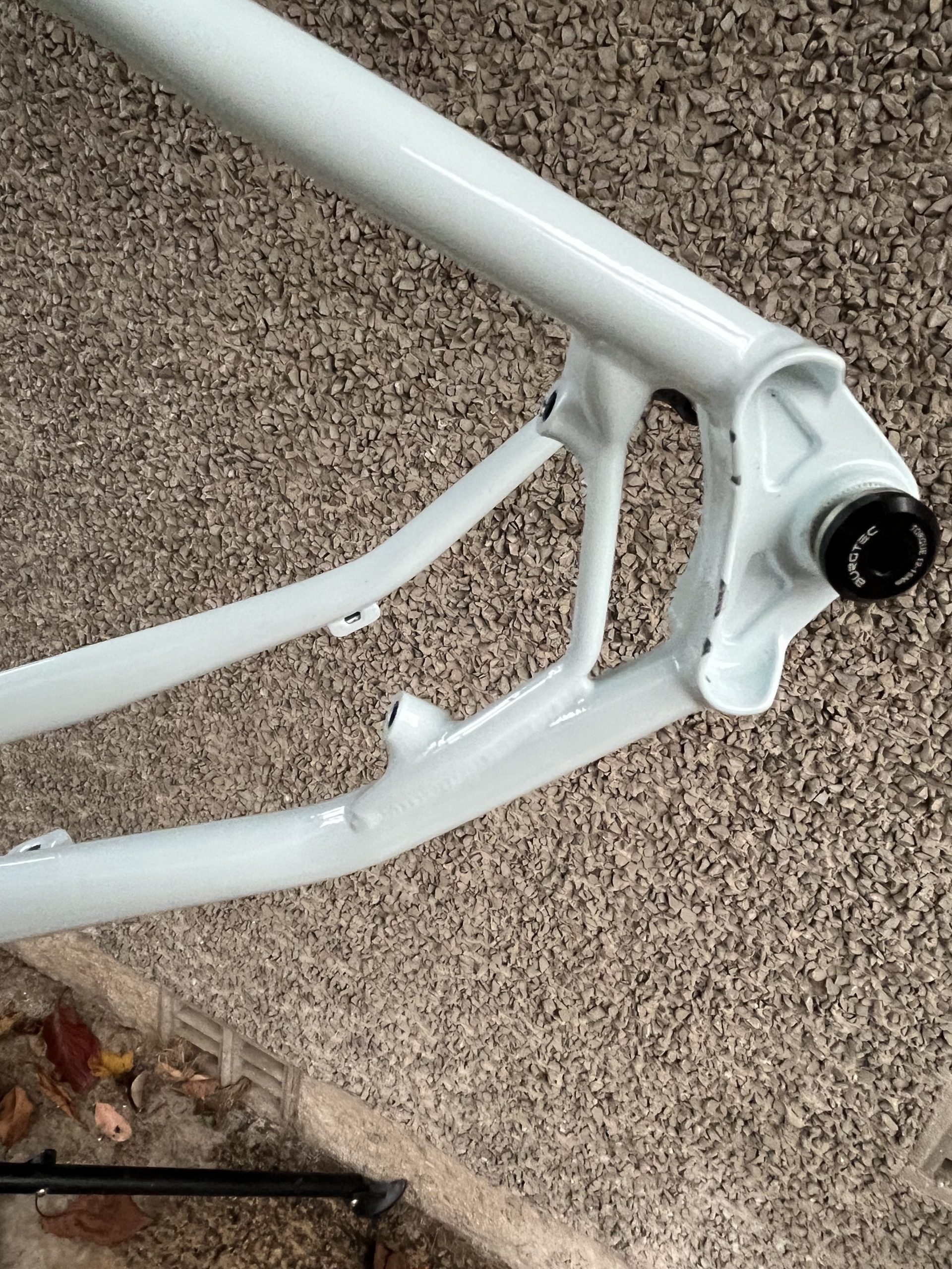 Included is the frame, Sram Dub bottom bracket and Hope headset. I am happy to remove the headset and reduce the price by £50 if preferred. Both fitted parts came with the bike so are in virtually as new condition. The paint is in excellent shape as you would imagine with only a couple of paint chips, one from the chain when removing the rear wheel, the other from storage. The frame is designed for 29″ wheels, 130mm forks and a 31.6mm seat post. Most of the full build parts are also available and can be negotiated.