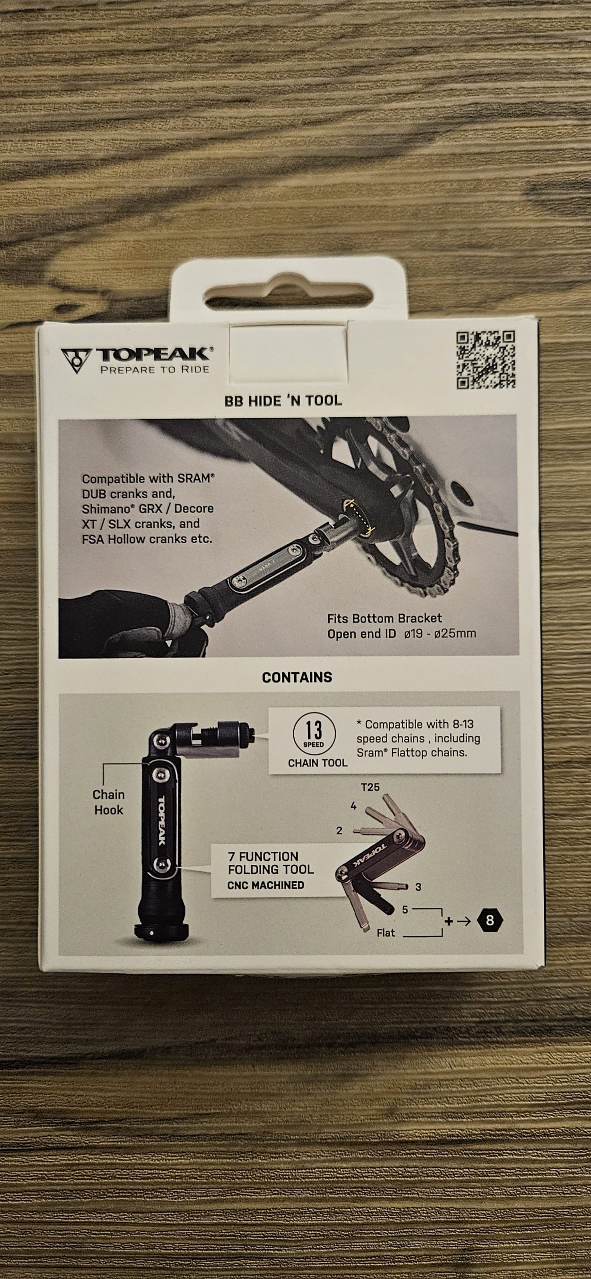 Compact and portable chain tool with 7 function full metal folding tool that slides into your MTB bottom bracket for easy access The built-in magnets secure and hold the folding tool in place. For those who like to ride without a bag or pack, this stealthy multi-tool is a great choice.