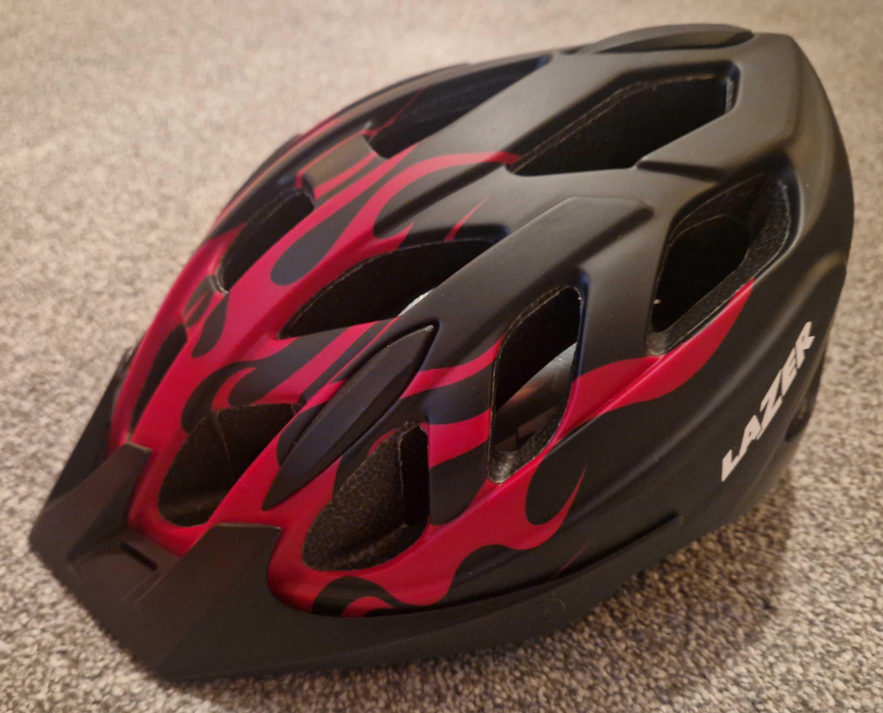 + LAZER J1 size small/junior helmet, red and black flame style. £20