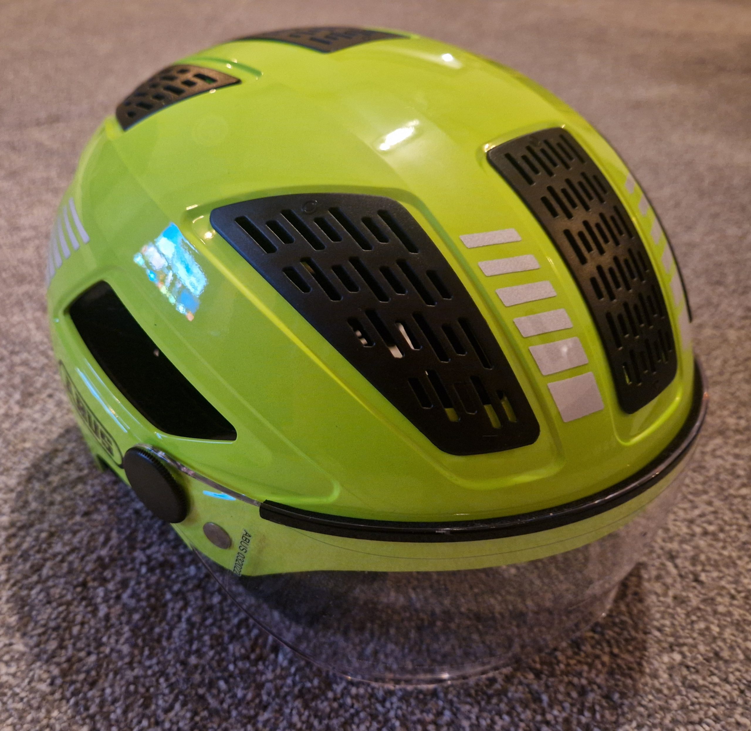 + ABUS Hyban 2.0 ace with built in visor in a lime green. Size medium. £45.