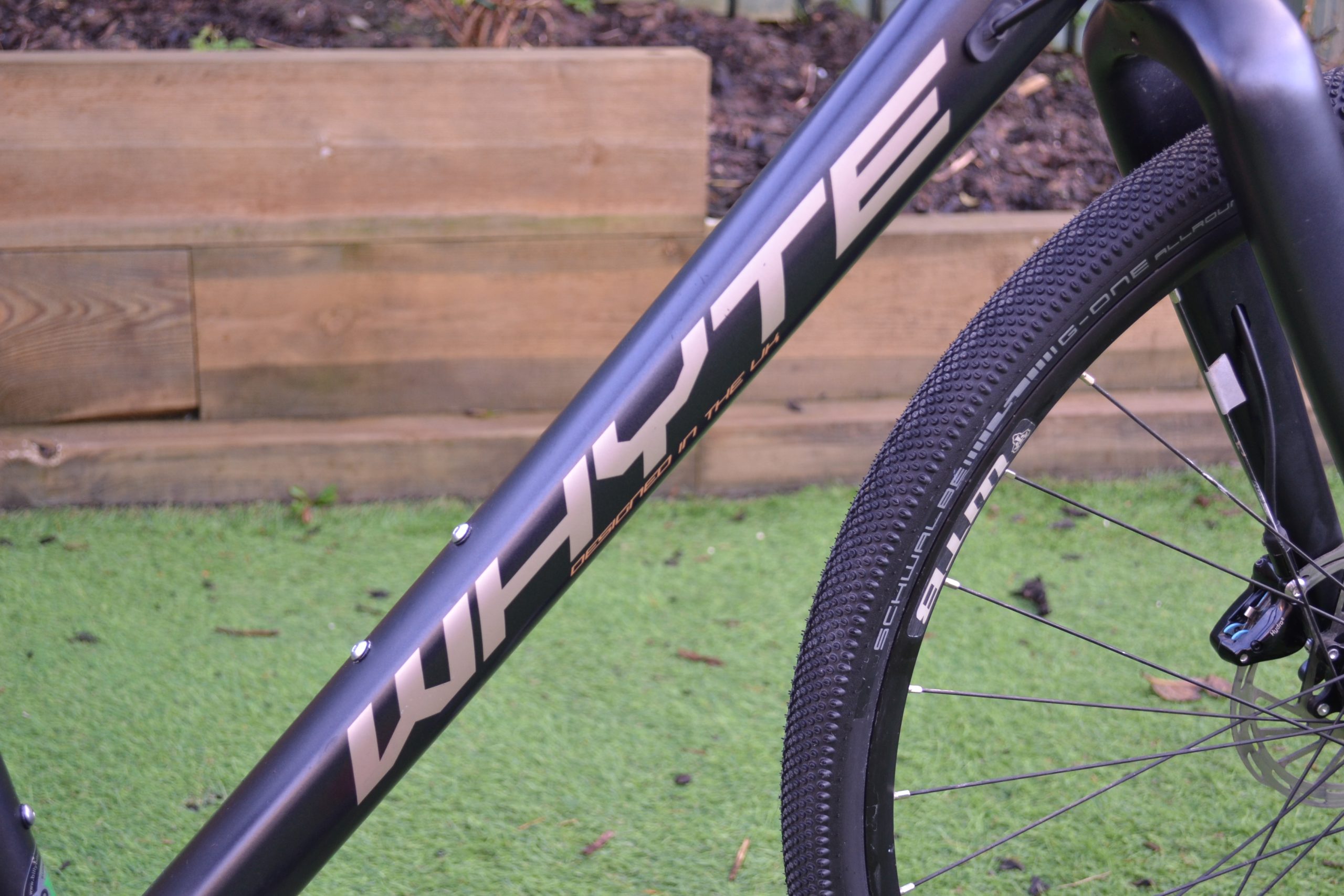 650b WTB wheels with brand new 38mm Schwalbe G One Tyres. Will take up to 650×45 mm tyres and I also ran 700c road wheels on it