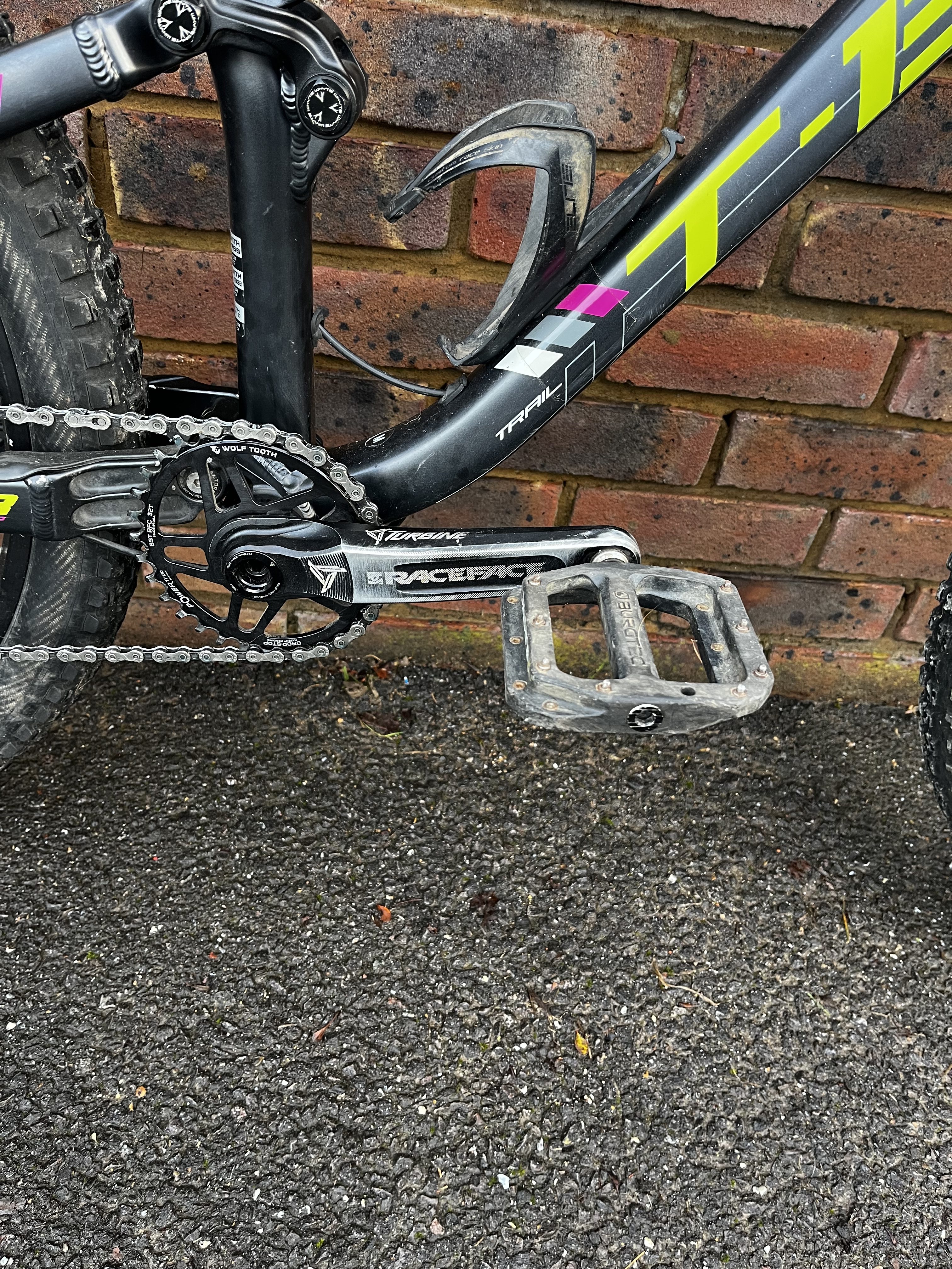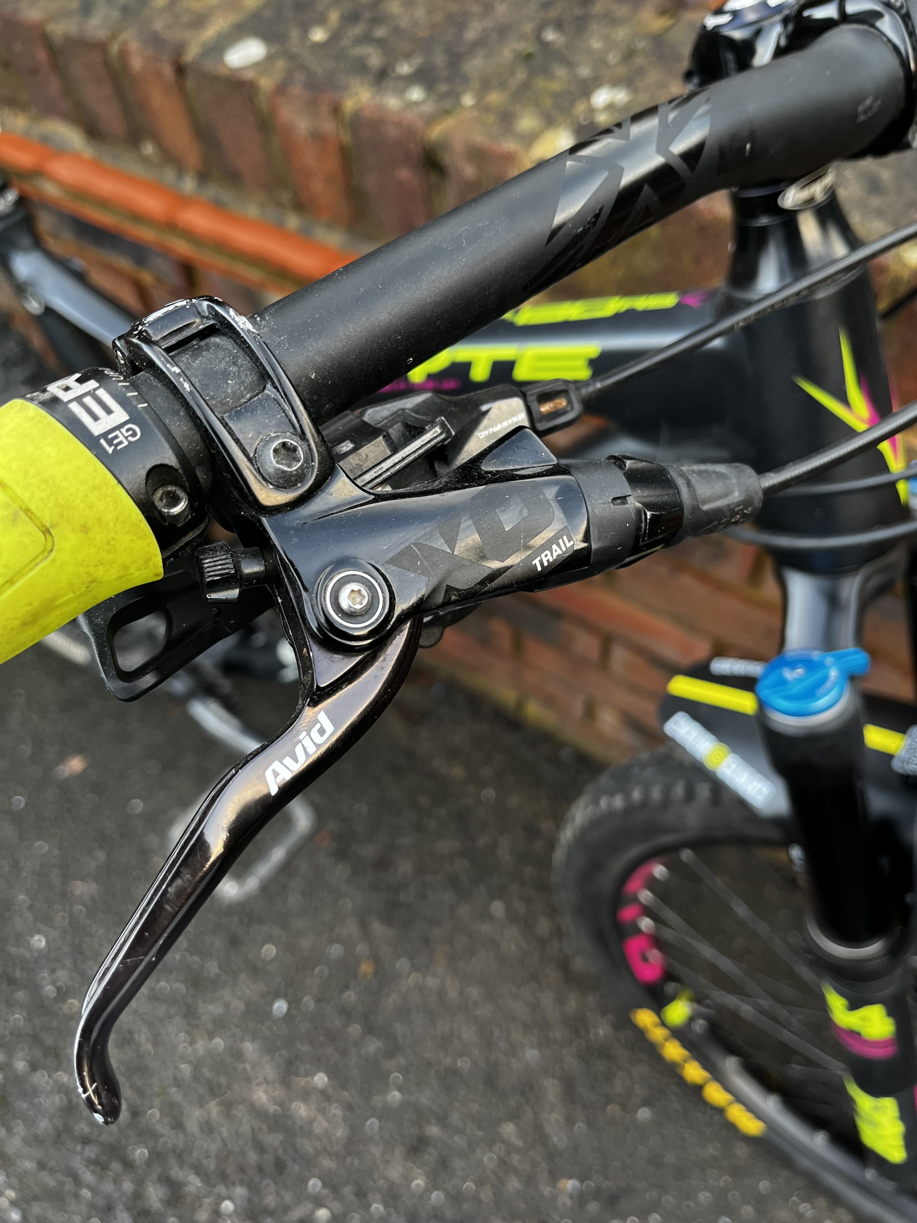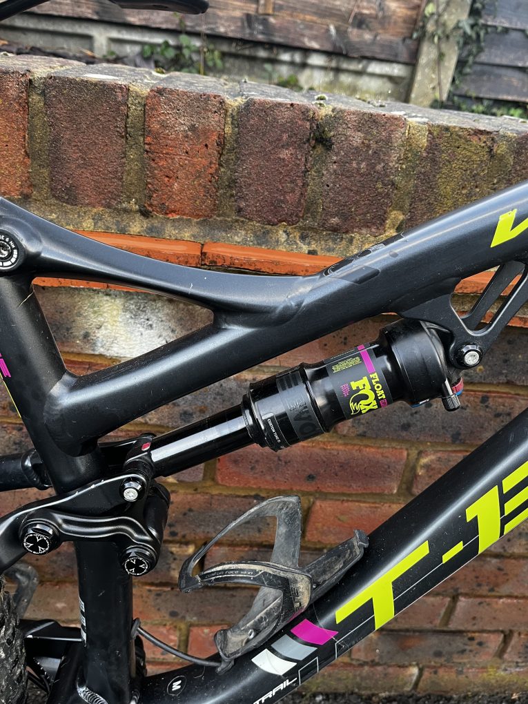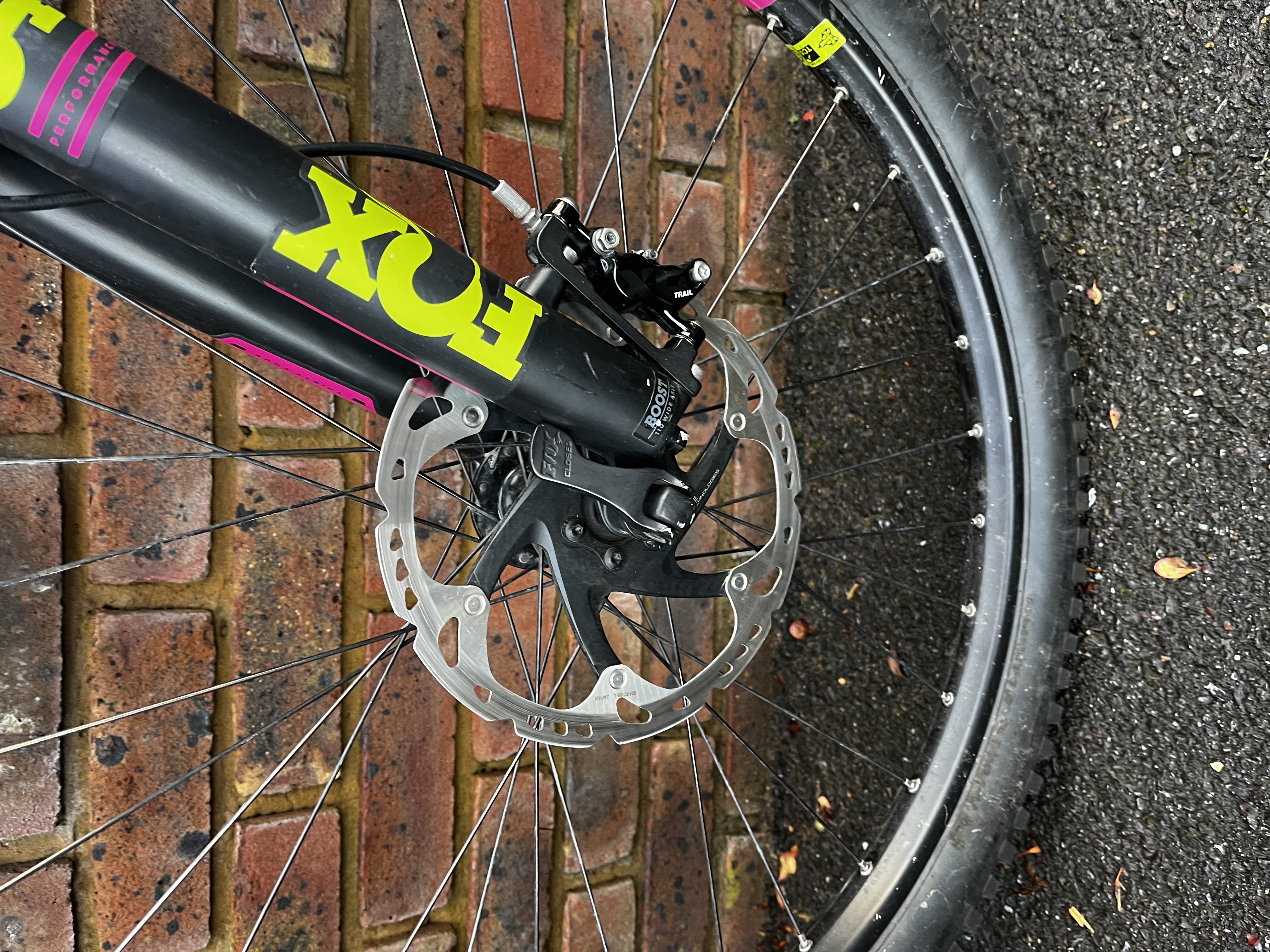 Forks and shock hold air. Tyres set up tubeless. Dropper works great. Gears indexed well. New pads in the brakes so a bit squeally. Pedals not included.