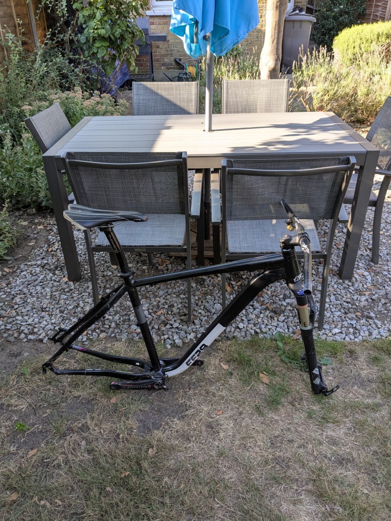 Large Kinesis Maxlight FF29 frame with headset and QR seatclamp – good condition, bit of paint peeling but nothing too serious. Very light and made a great XC bike £55