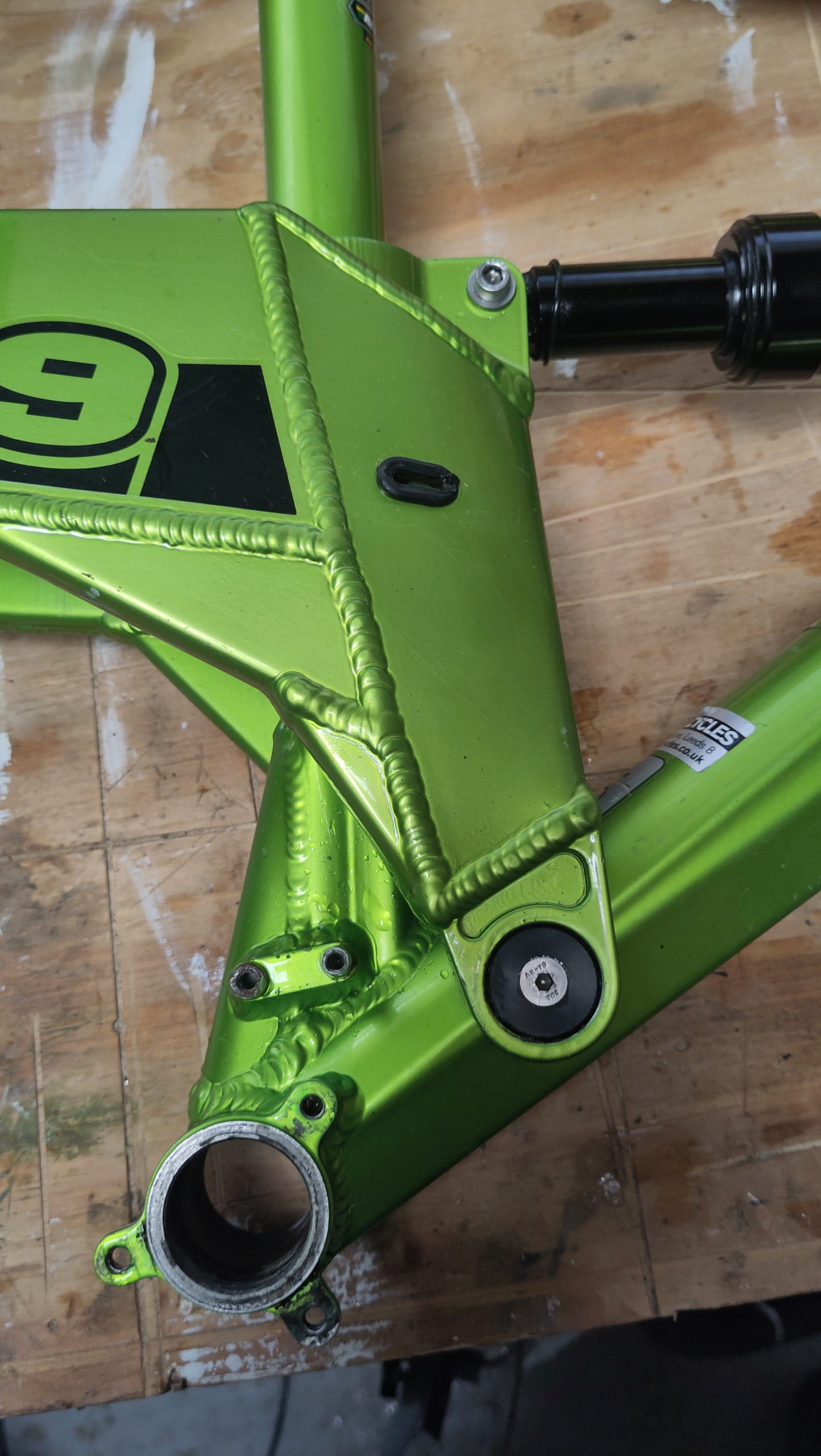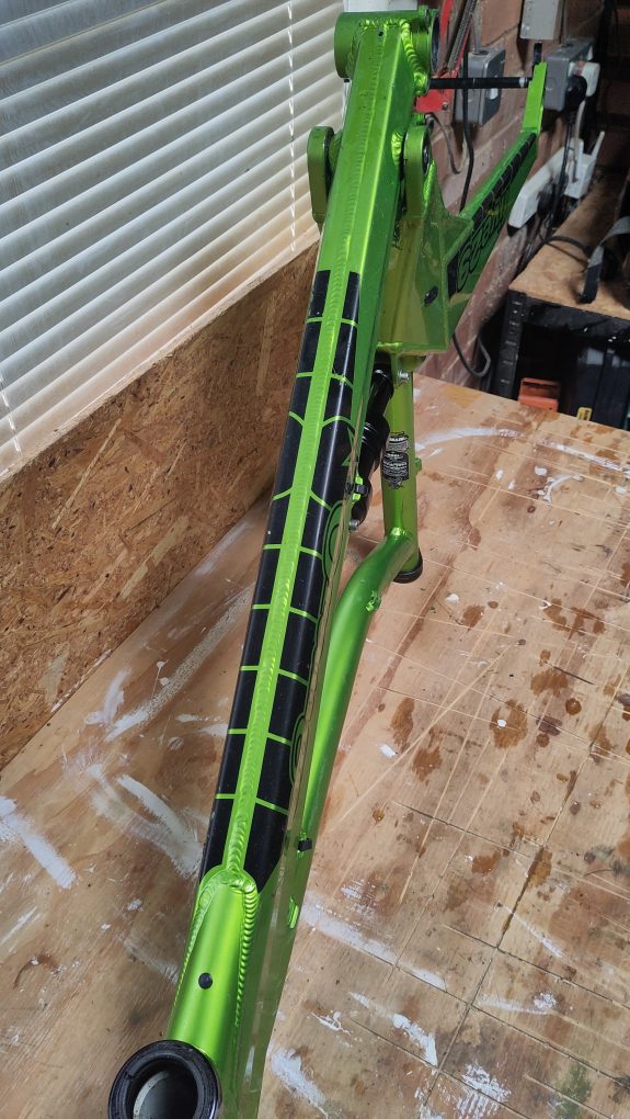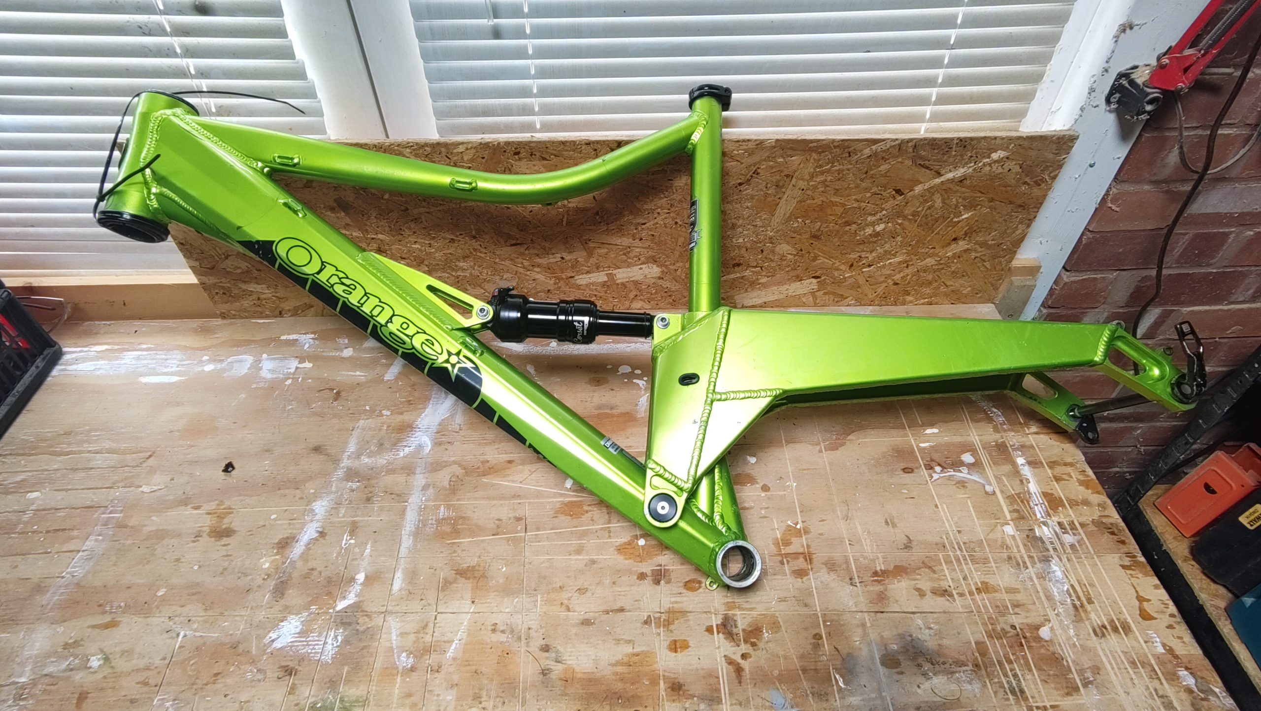 Orange Five 29, XL (21”), in Apple Green. 140mm rear wheel travel, 142mm x 12mm Maxle rear dropouts.