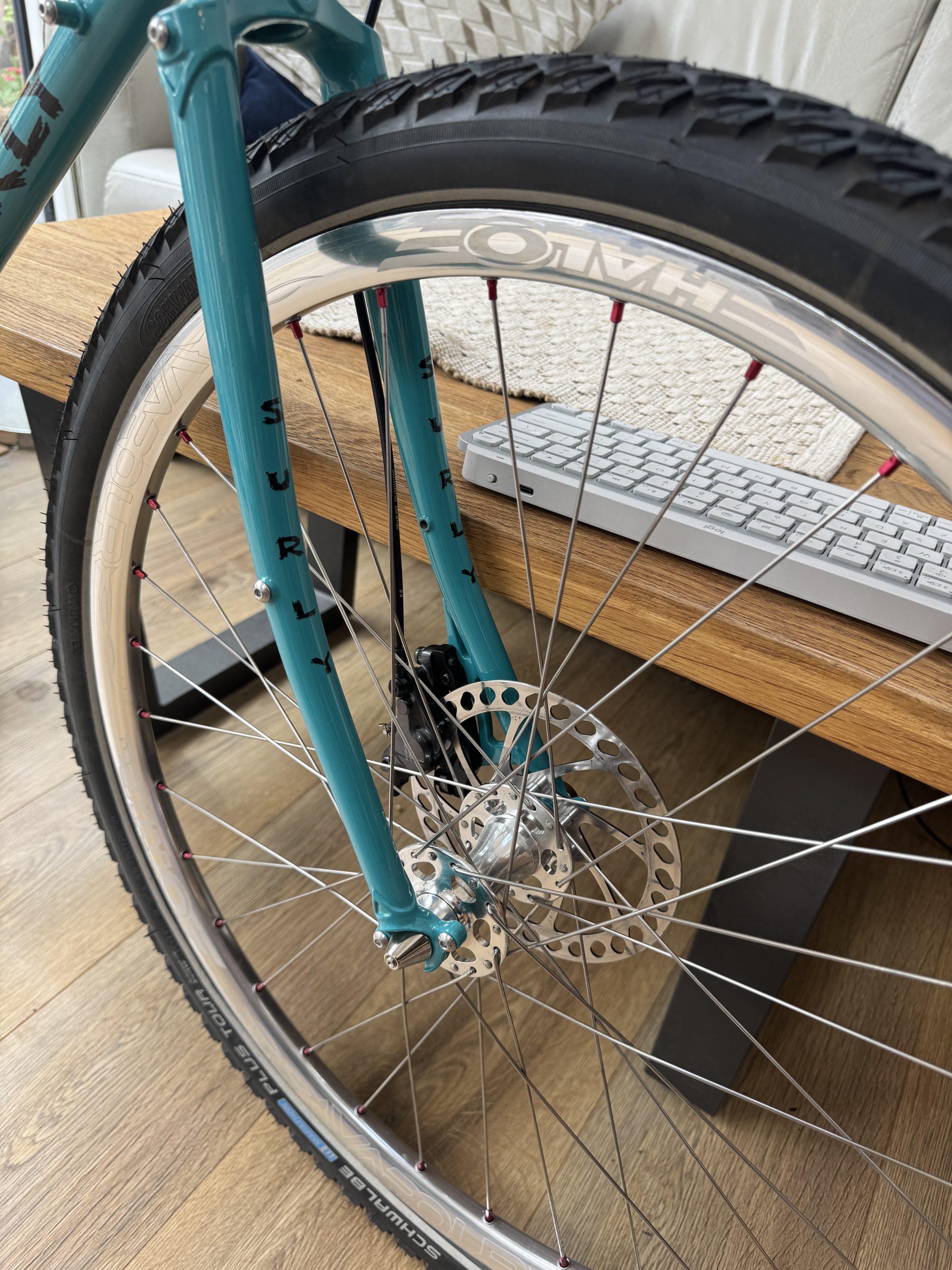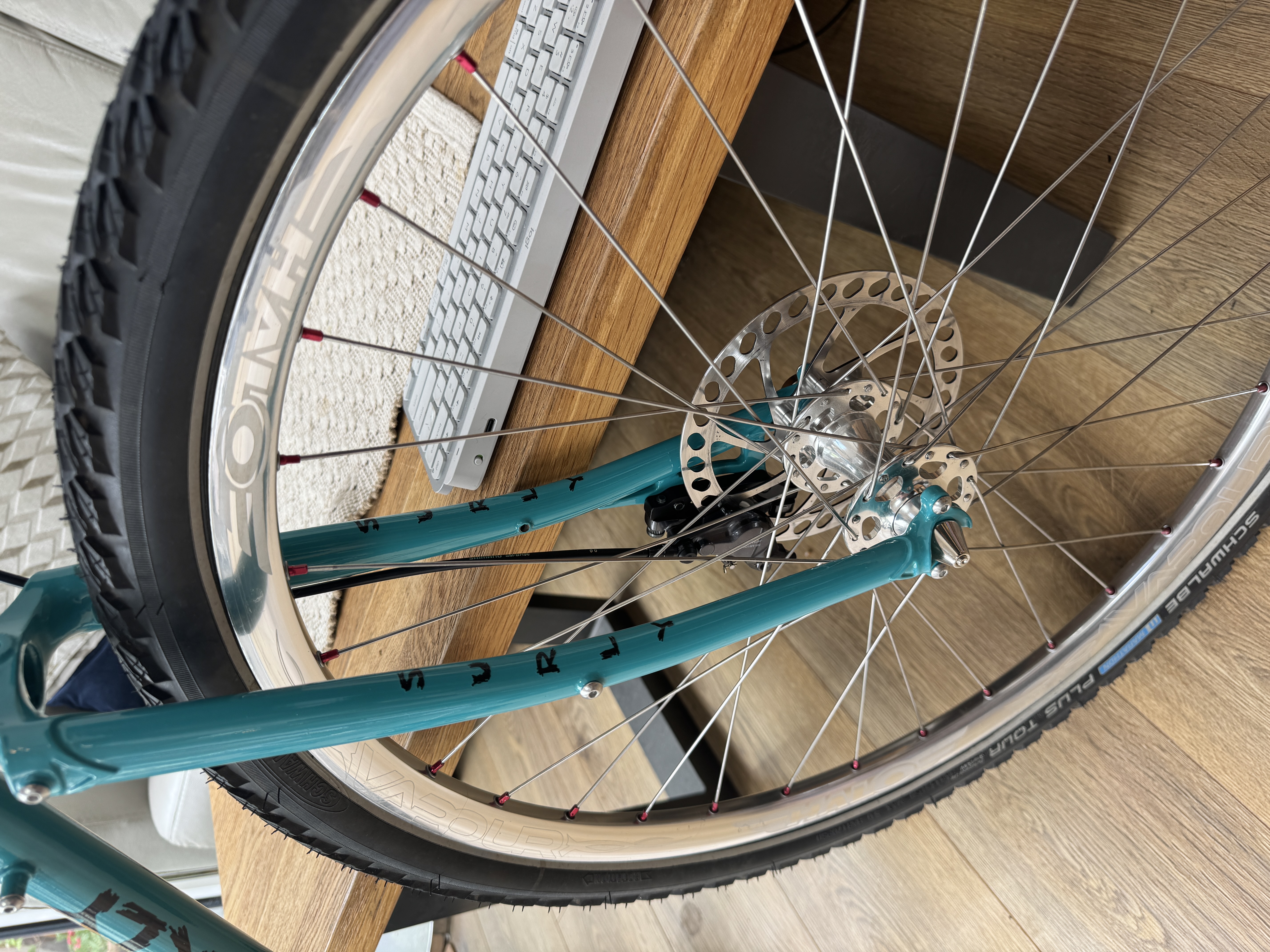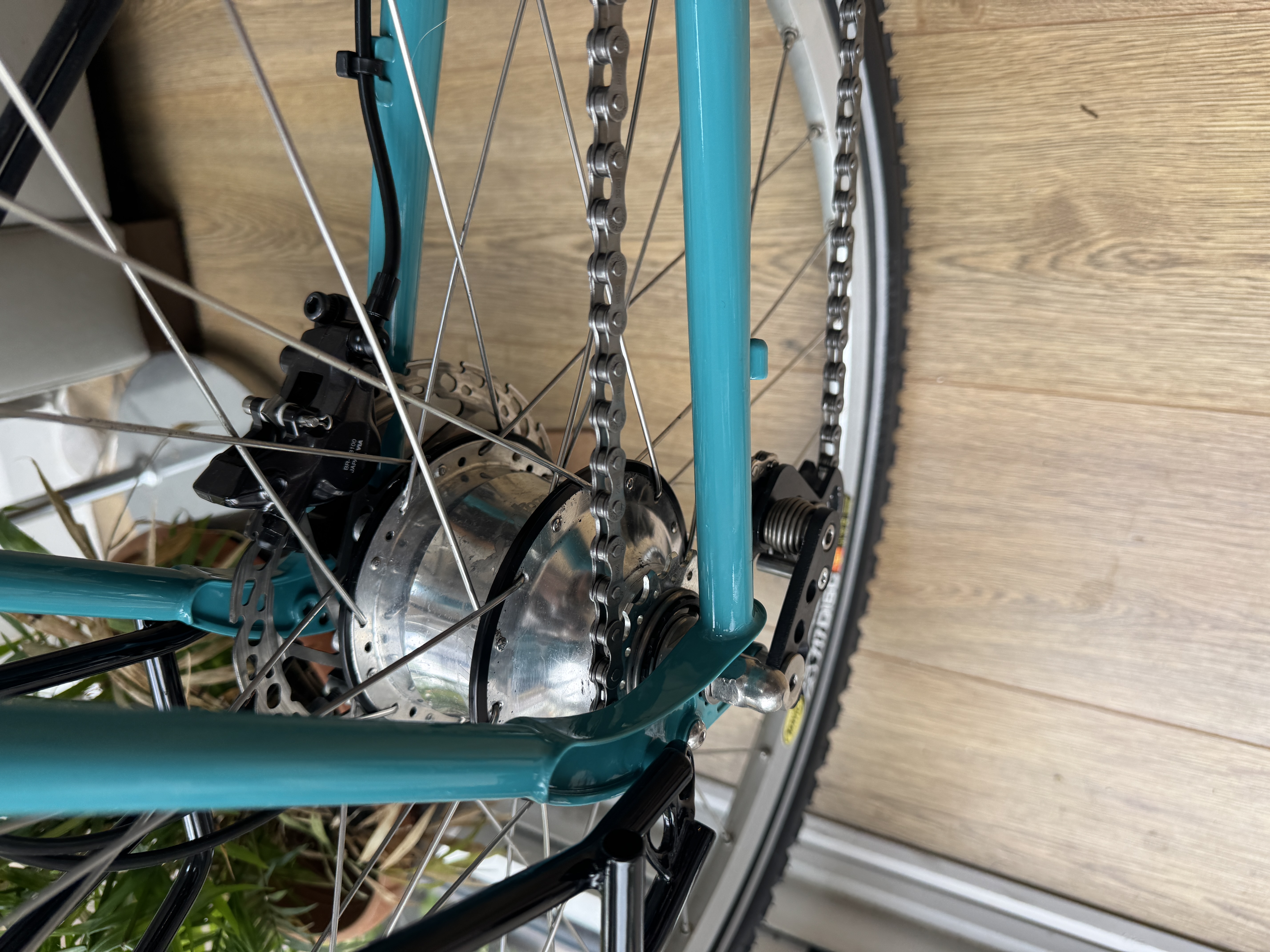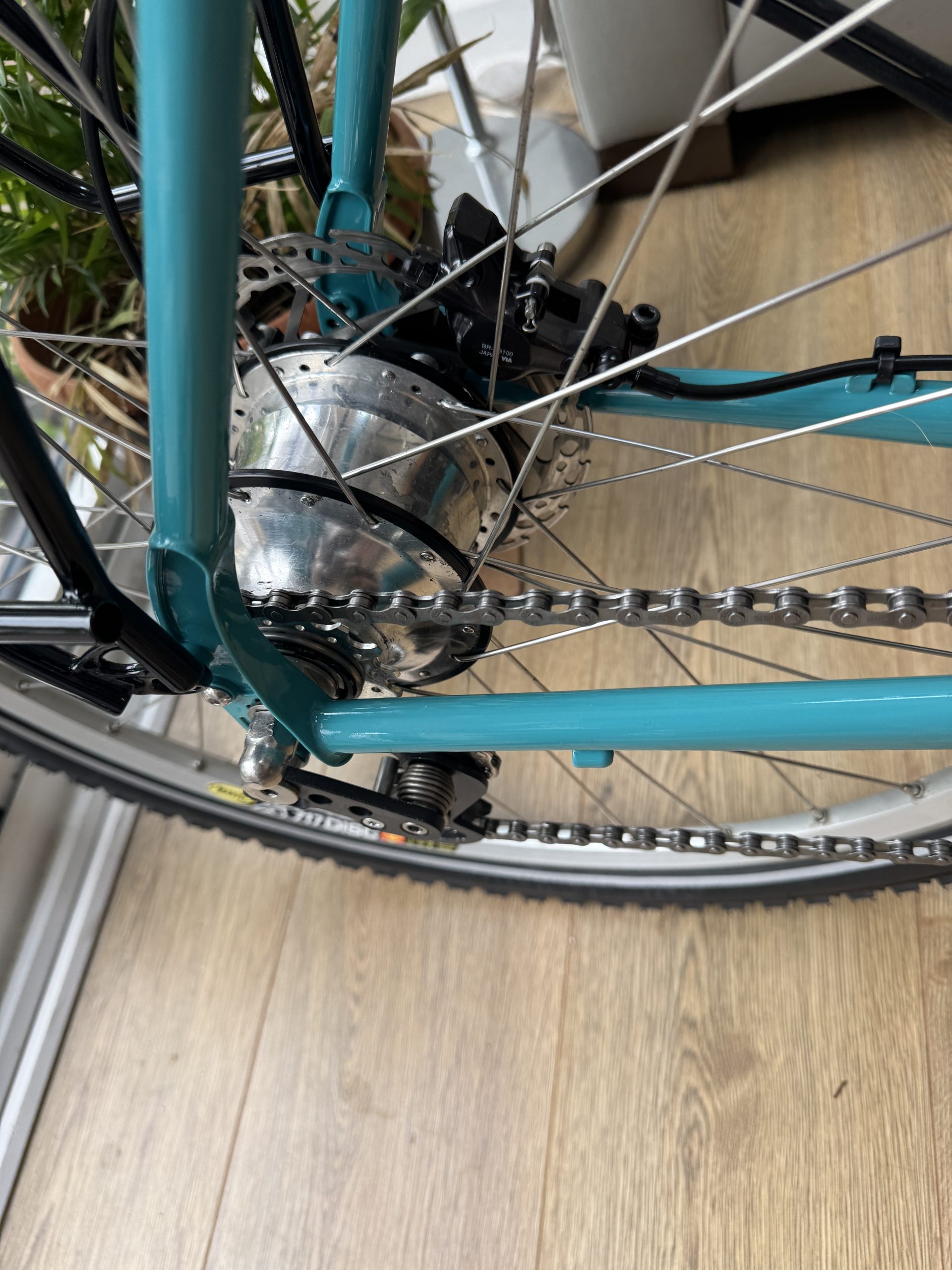Rohloff disc Speedhub – just had brand new gearbox internals fitted along with all seals and drive cog etc so basically a new Rohloff hub in a used hub shell. Have receipts for the work @ Keep Pedalling Rohloff Service Center.