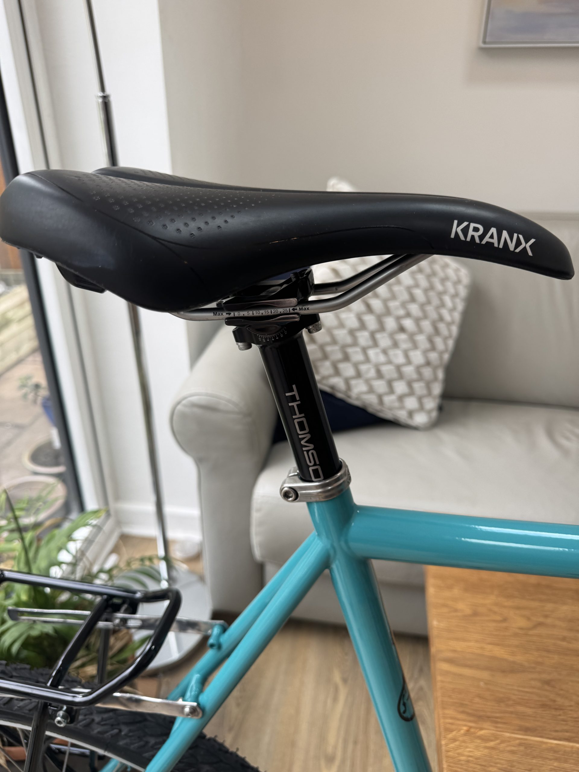 Finished off with Schwalbe plus tour tyres / Kranx saddle / Gusset Wharf bars and DMR Deathgrips.