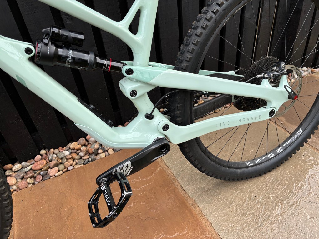 Upgraded Pedals: ANVL Tilt V3 (105x105mm, 10 pins/side, 410g), grippy and durable for trail/DH riding.