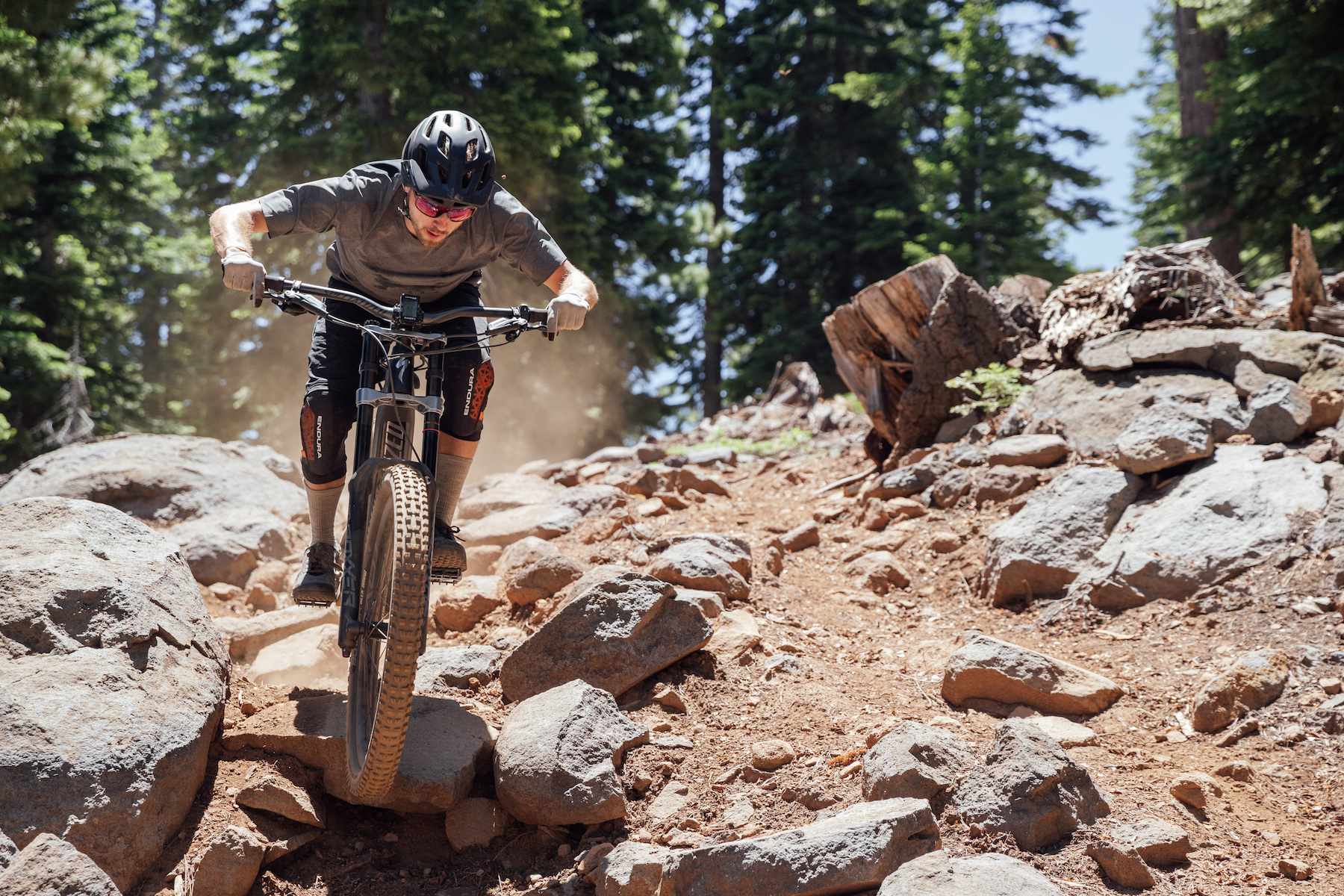 Despite the newly slackened geometry, the smaller 27.5in wheels were easier to thread around obstacles, which I found particularly noticeable having ridden the 29in Enduro only the day before. And with plenty of traction on offer, I found the technical rock climbs to be surprisingly doable on the heavy Kenevo.