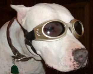 When it's wet and muddy, does the dog get [s]goggles[/s] [url= http://doggles.com/eyewear.html ]doggles[/url] to wear?
