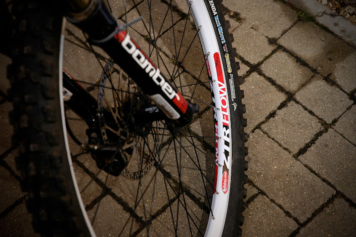 Those white rims look good with that fork, what fork you running? I've got a 120mm MX PRO with ETA and TAS works really well and I think the longer crown to axle length suits the geom of the frame and it was cheap! Going to have to get some experience building my own wheels, what jig do you use? Don't you wish they had put some fixings for a pump / bottle on the seat tube. I'm never going to put my seat that low down that it would catch. That is the only thing I would change on that frame.