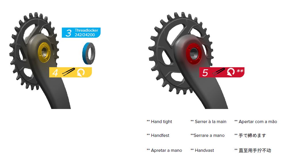 Are you sure it's reverse threaded? My GXP set up which is very similar isn't. Also on the picture you've posted the torque setting seems to suggest normal thread?