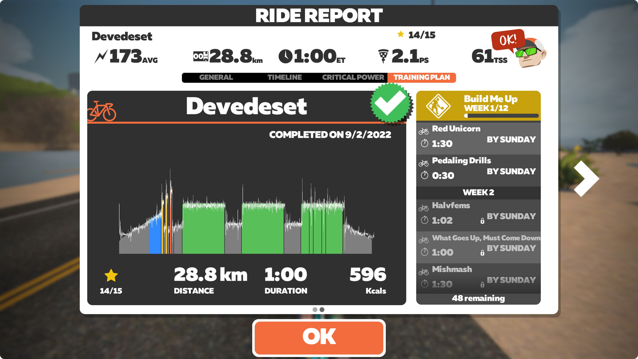 Yep, got Devedset done just now, not too bad. Started off doing it in resistance mode but by the end with the cadence changes I switched to ERG as I couldn’t be bothered faffing finding the right gear.