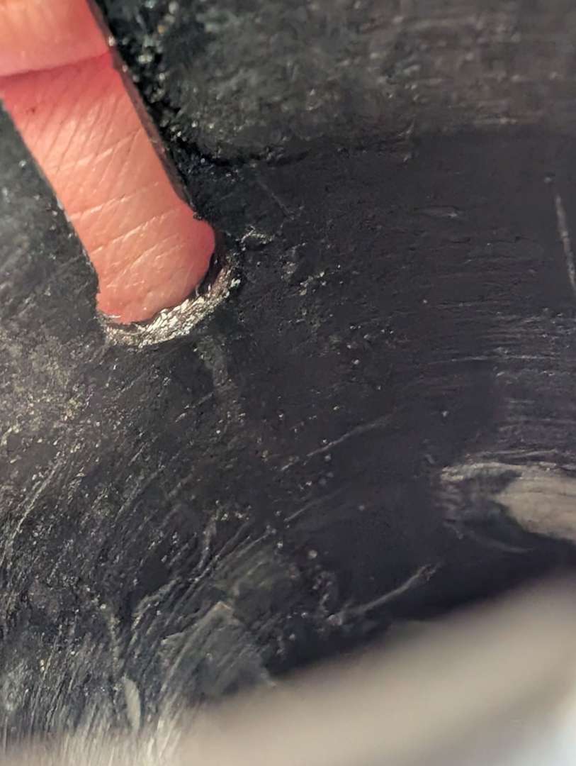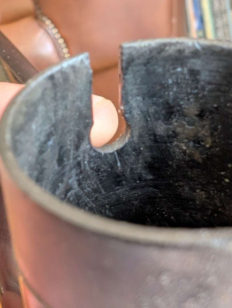 Both front and back slots on a carbon CX frame :(. Looks like it's due to a 30.9 post being run in a frame that is 31.6! I've fitted a looong 31.6->27.2 metal shim and a 27.2 post for now but am undecided about what to do long term.