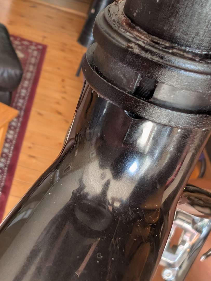 For a repair I'd be thinking sand back, drill end of crack then build a reinforcing ring around the whole post but below where it is sized for the clamp. Then blend in and paint. I will contact Boardman to confirm the post size but this is a 2016 model frame that was NOS in 2022.