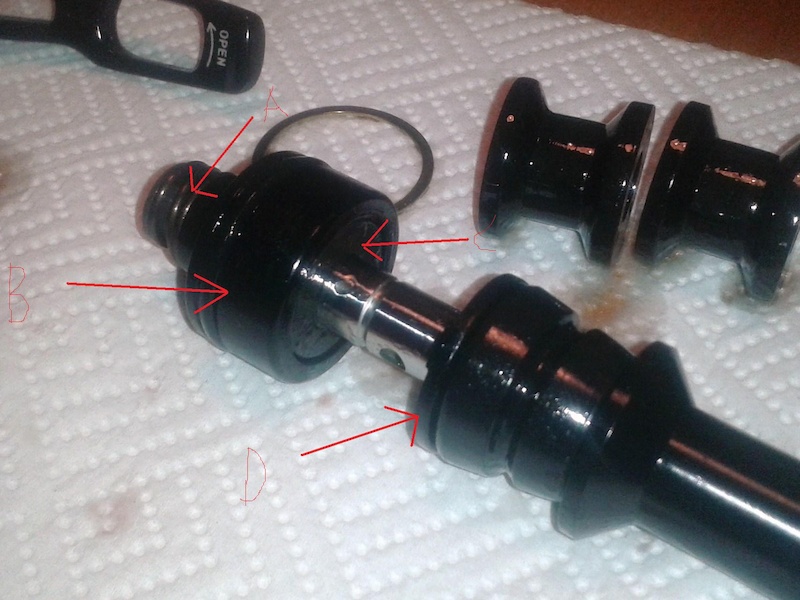 2. Spacer between parts D and C, so that part D no longer pushes on B.