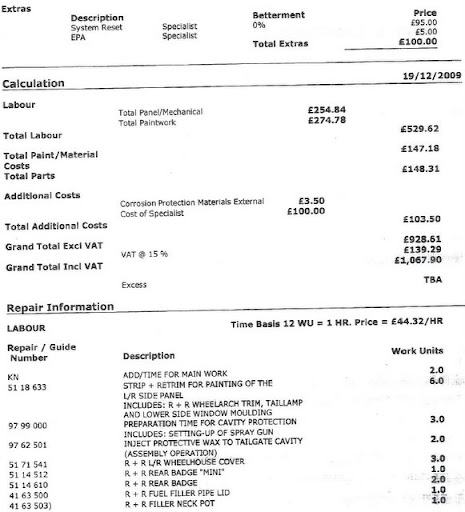 Regarding the damage, find out who the bodyshop is and talk to them direct. It can save you quite a few quid going direct.