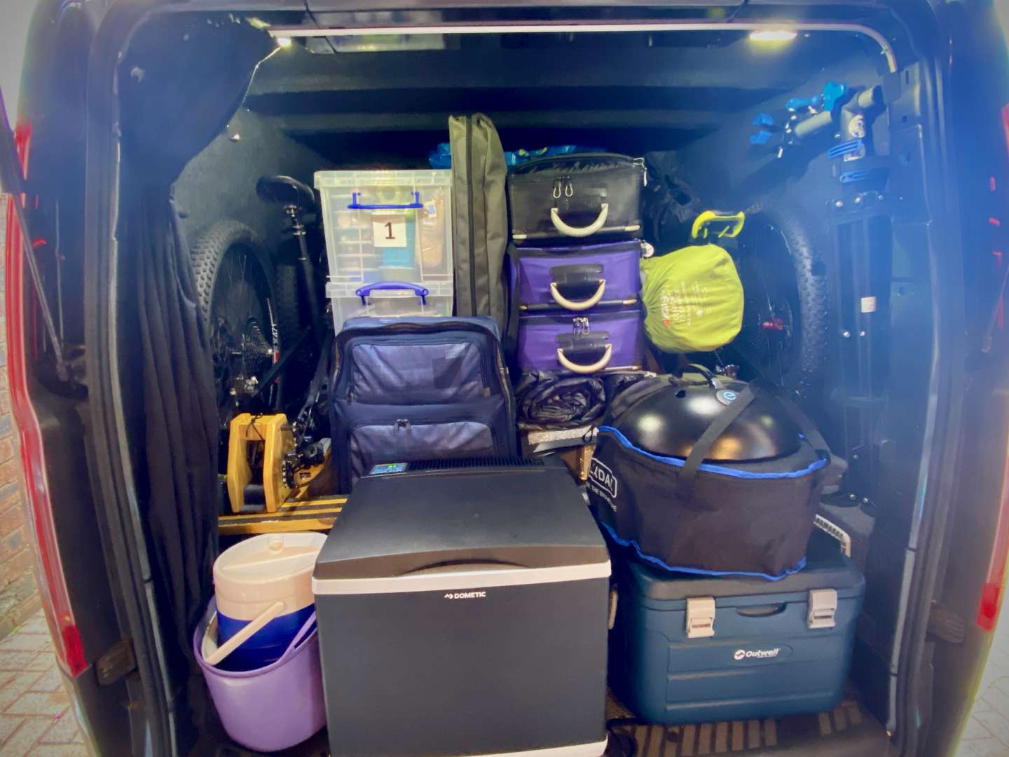 And there are two bikes in here already with another two still to go in, along with more camping stuff...