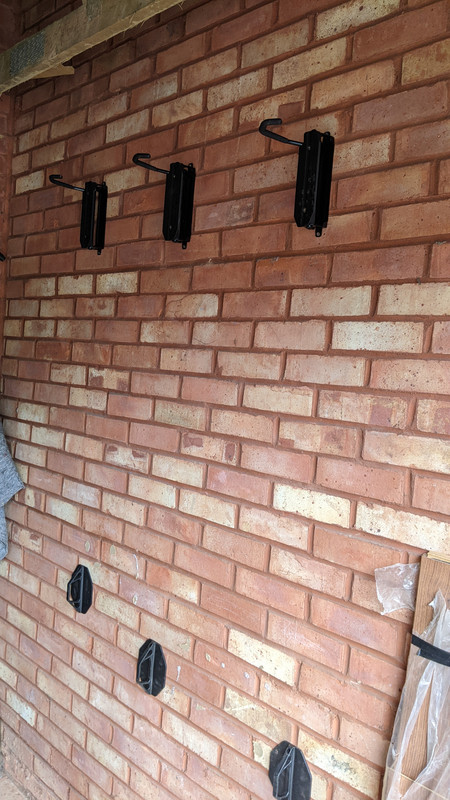 Decathlon suggestion - thanks. That is a great shout. They actually have a 5 bike wall mount option like the sliding one that is tempting for £100, but i do like your angled bar method to save width. Decathlon have some nice, almost park blue and silver, hooks that are retained with 2 screws so not going to be a problem vs the more basic screw in hook options.