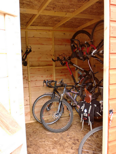 A Garage is prob best, or a shed/workshop at least 10x12 I'd say for bikes/tools/fettling!
