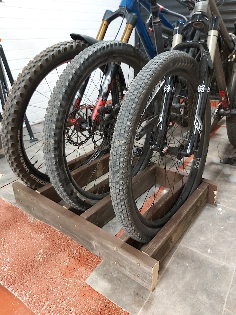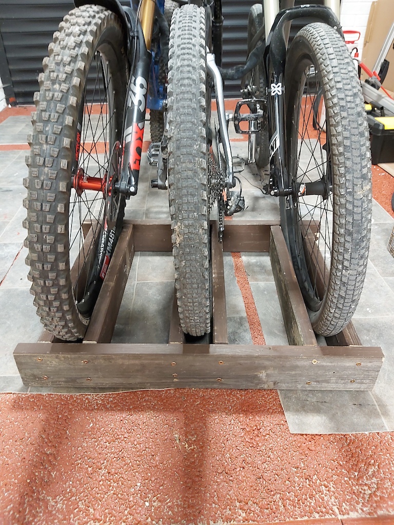 I think they are much better than floor brackets as the floor is clear, you don't have to squish tyres in and mechs don't get knocked. Because the timber holds the top and bottom of the tyre, the bikes stay perfectly upright with no wobble. You can also move and leave the bikes at a slight angle to make it easier to get todays choice rolled out or get between the bikes to unlock the floor anchors.