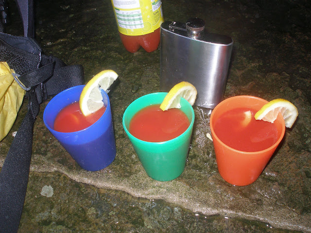 The second solution was stopping at some convenient point (in our case the Pigeon tower at Rivi) and break out 2 litres of Bloody Mary, made with extra Vodka. Toss, the provider of the refreshemnt, had even packed a full lemon and sliced it for each of our drinks.