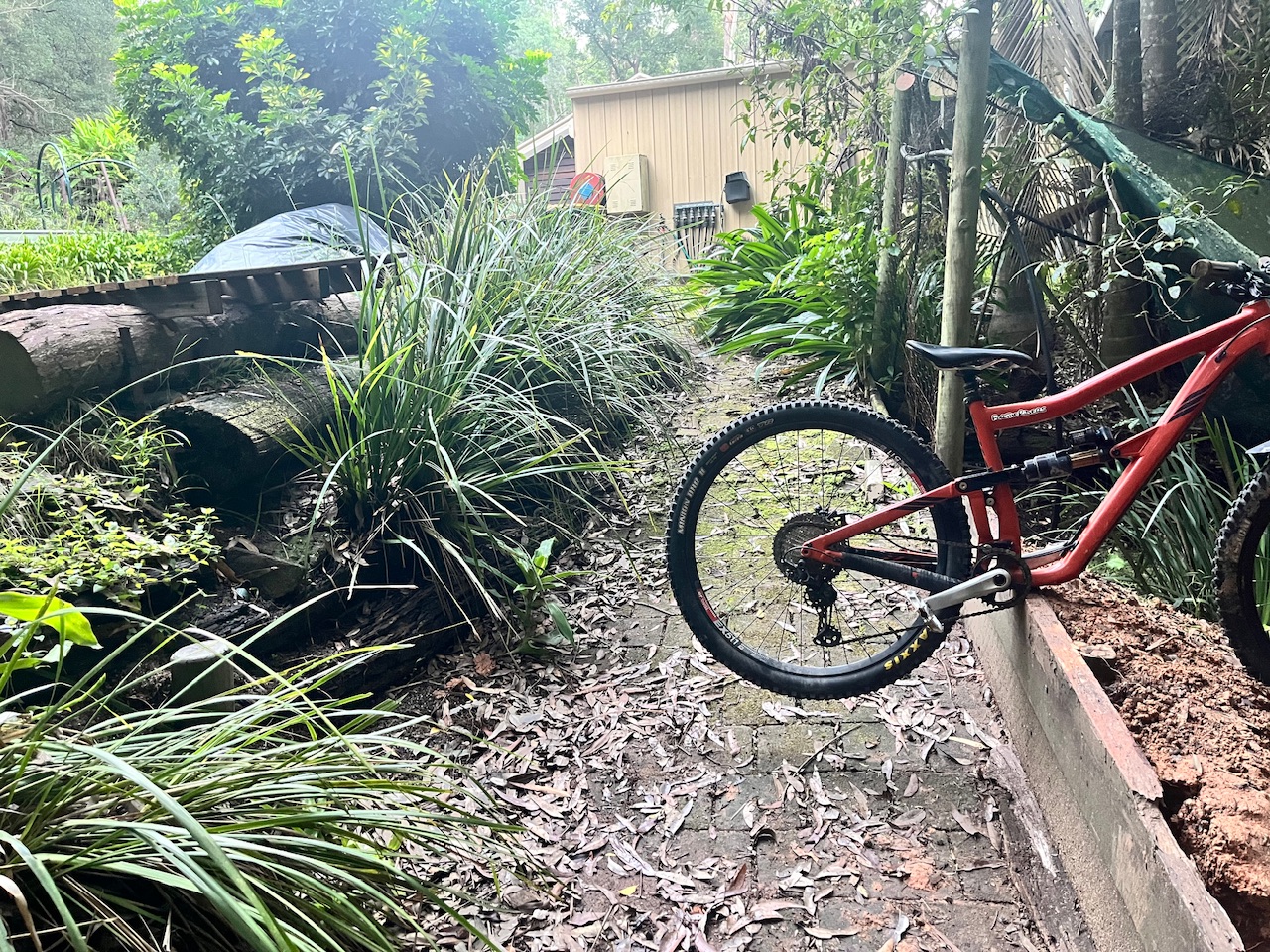 Well, I went for a thrash today. Rode a mild 2 min 30 downhill track three times, multiple drops, jumps a rock garden and a g-out. Some other tracks including a really fast spoke pinging g-out through a rocky (dry) creek.