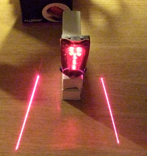 Yup, they are lasers. Show up fairly well, but dependent on the road surface. Look for big_f_d_d on ebay.