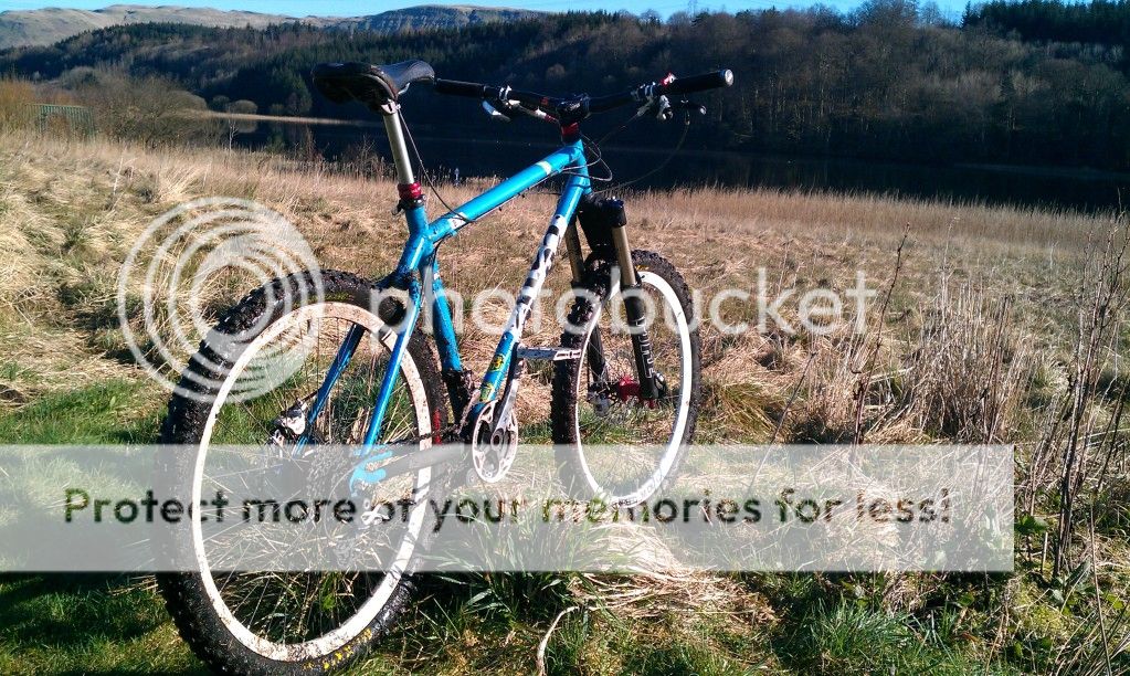 So then I got this, still got it, no intention of changing it. Lyriks up front, 120mm in the back, slacked off to 66 degrees with a works components head angle reducer, light-ish and strong enough. I've raced at fort william on this, and done enduros and downhill at innerleithen, but also rode it for a week in france, xc rides in the pentlands and on the west highland way... Love it.