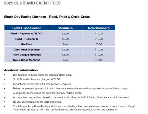 I think I'm seeing why, £37 to enter, £50 for British Cycling membership and £40 for the racing licence. Somewhat discouraging to the have-a-go heroes 🙄