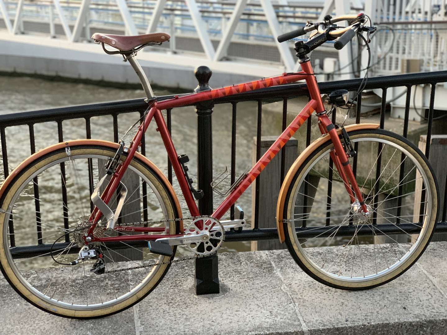 1999 dekerf, bought second hand in 2000. disc mounted, resprayed with salsa cromoto forks to match and SS'd in 2012. plus front added in 2016(?) Stooge Junker bars in 2019. Still a hell of a lot of fun to ride, and SS hurts me on the hills every time! might lower the gear at some point.
