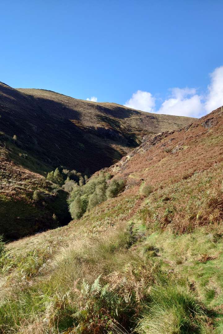 I know that the bracken will die back but it has seriously invaded to trail in so many places. The fallen trees are too big to be dealt with without a chainsaw, the boggy sections need draining- I could carry (sometimes do) a small entrenching tool for this but it is the way that the trail has just dropped down in so many places and is now seriously disjointed.