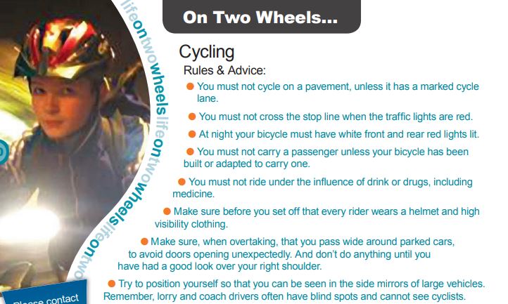 Remember that this is information given to people who drive cars badly, not to people who ride bicycles.