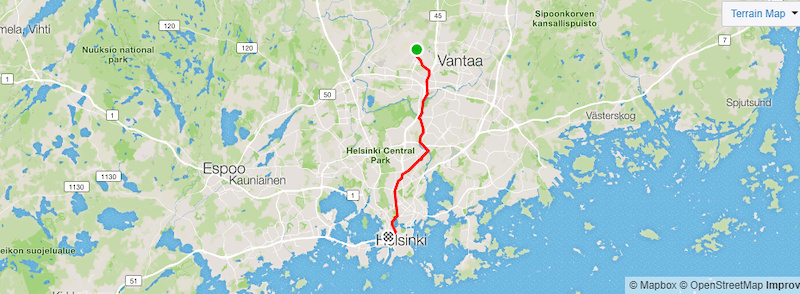 [b]Day 1 – Helsinki airport to Helsinki, 20. 5 miles, 12mph, 1000ft elevation[/b]