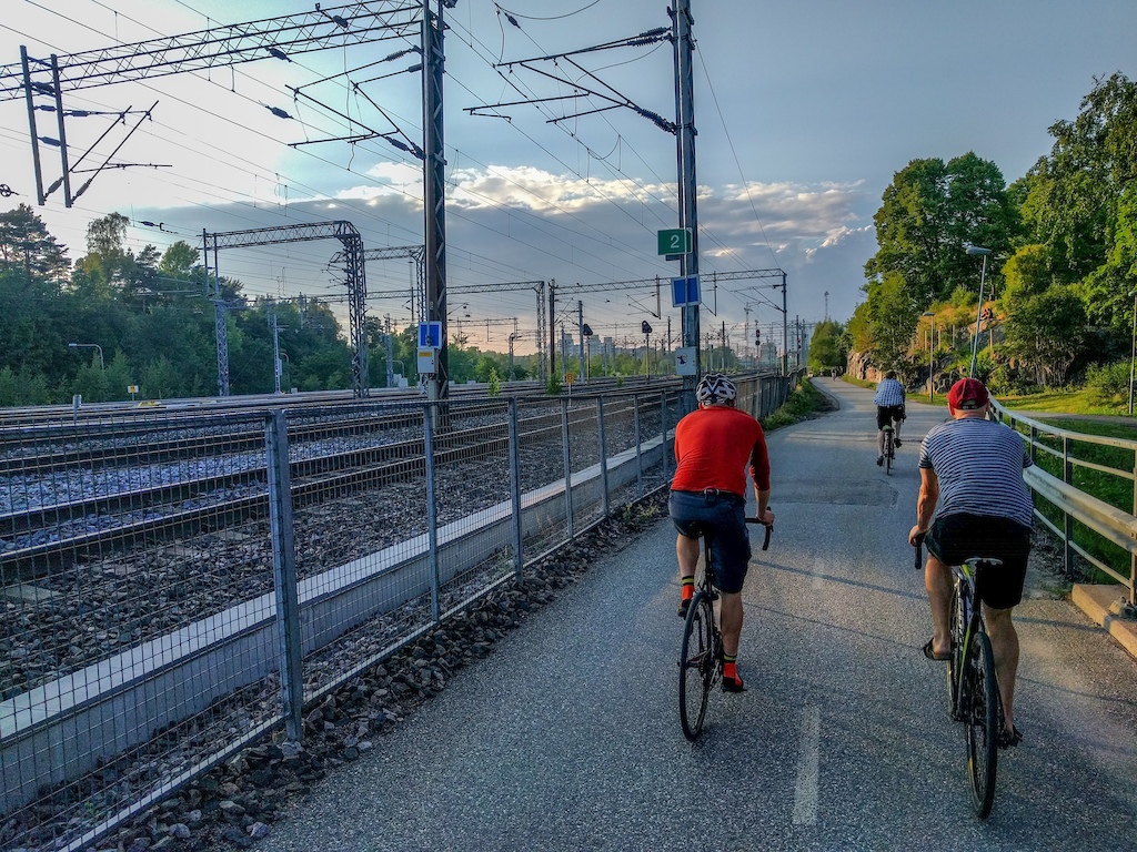 We all arrived in Helsinki at different times, as we came from the UK, Denmark, the Netherlands and Germany. Two of us arrived from Heathrow together, built the bikes and headed off towards town. We were amazed to find a two lane, completely segregated bike path following first the river then the railway line from the airport right to the middle of town. On the way we came across a free trance music festival so, having met the rest of our group, we headed back out for a rave, then to the sea for a swim. Turns out that the Baltic around Helsinki is not Baltic at all – it was almost warm, and not salty at all.