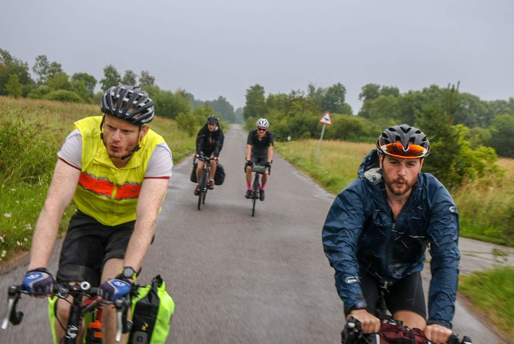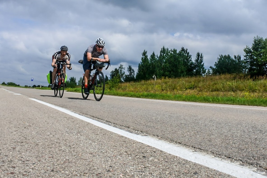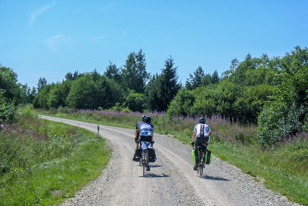 One of our member got tonsillitis, so rode alone to the nearest station across the border with Lithuania (trans-border trains in the Baltics seem to only run at weekends) while the rest of us cracked on. We’d been dreading the first gravel stretch of the day that crossed the border but the roads here clearly saw much less use and were smooth and fast.